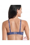 Входит в серию Ophelia. Плотные гладкие чашки в форме ракушки. Модель на косточках. Тонкие бретели регулируются по высоте. Роскошный синий сверкающий цвет с ромбовидным орнаментом. Состав: 85% PA, 15% EL.