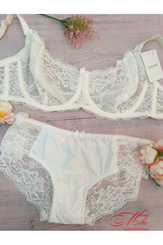 Модный базовый комплект белья состоящий из бюстгальтера и трусиков слип. Выполнен из элегантного кружева.