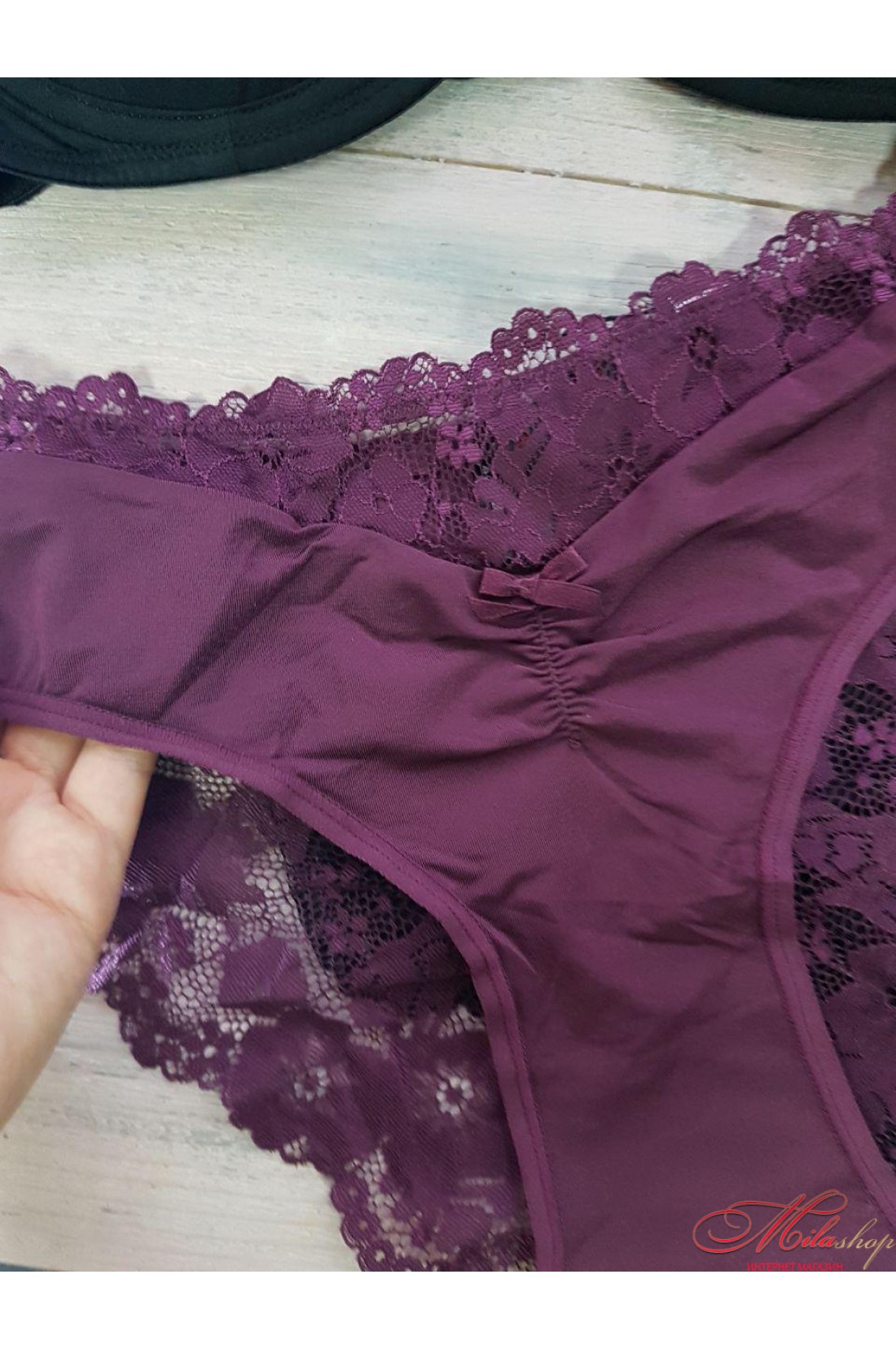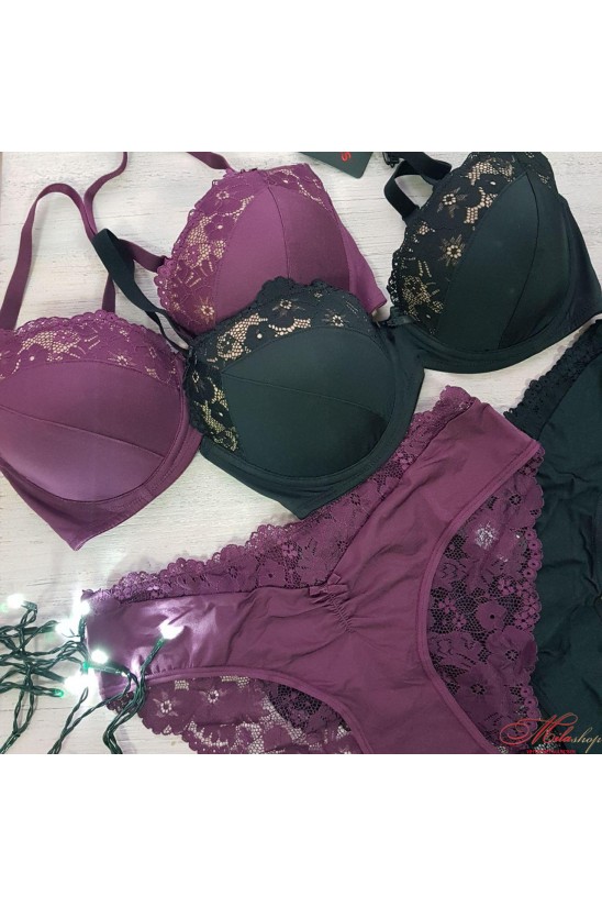 Практичный базовый комплект белья из микрофибры и кружева. В цвете марсала и черном с бежевым. Чашки внури гладкие без пуш-ап. Трусики-бразилианки со средней посадкой.