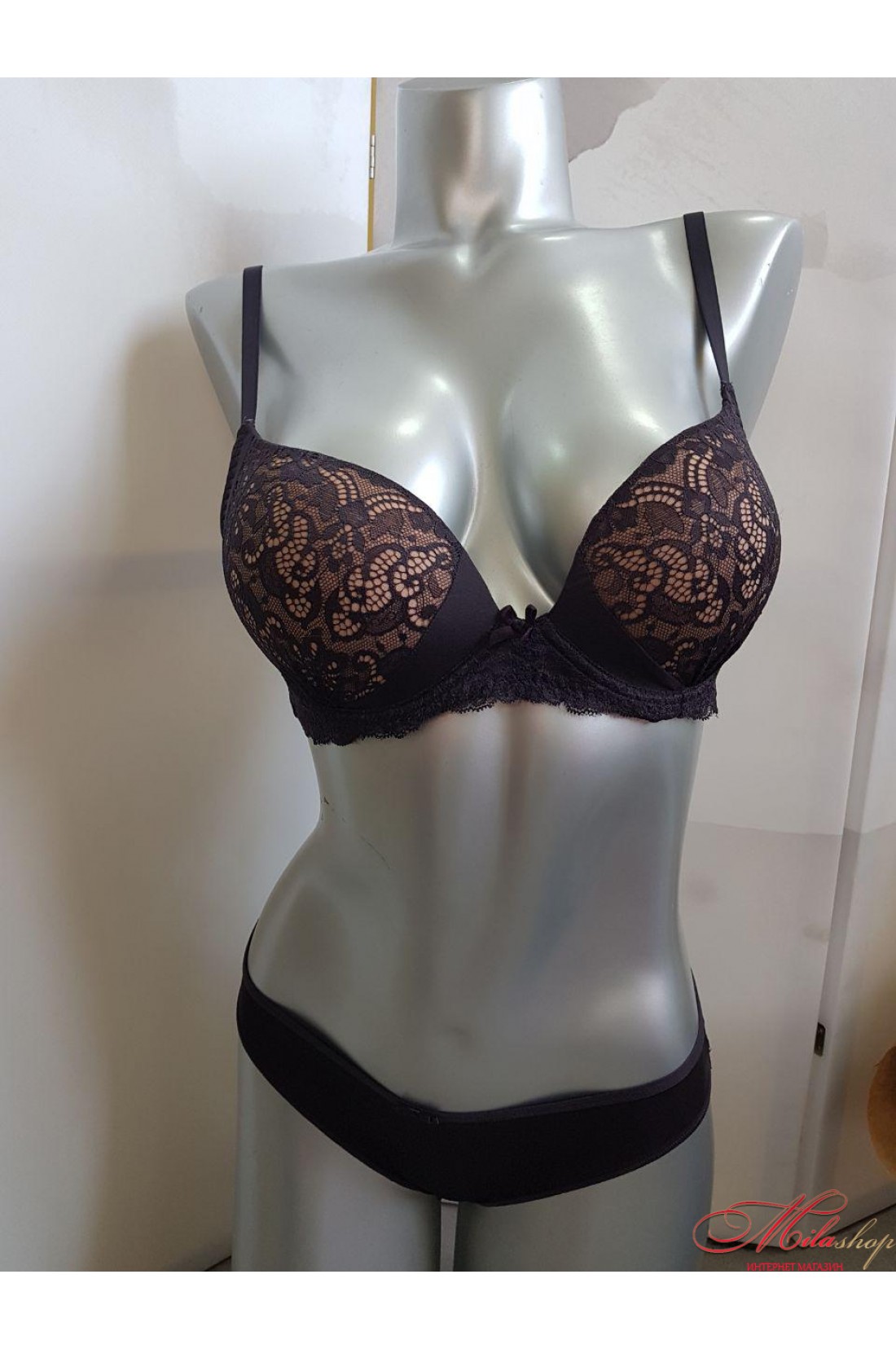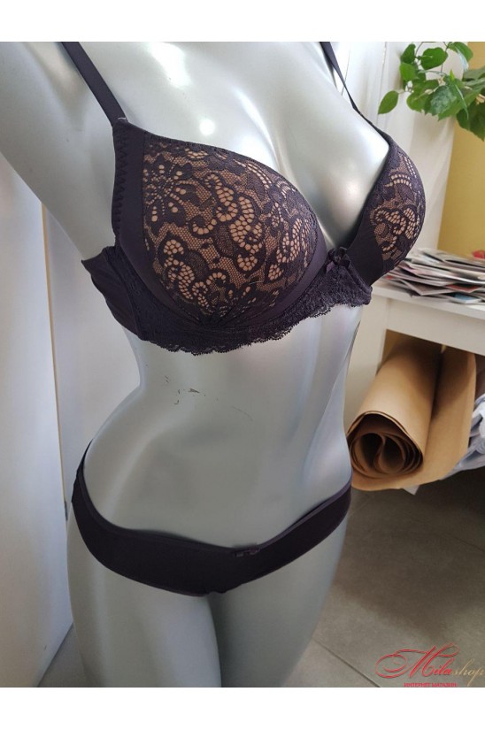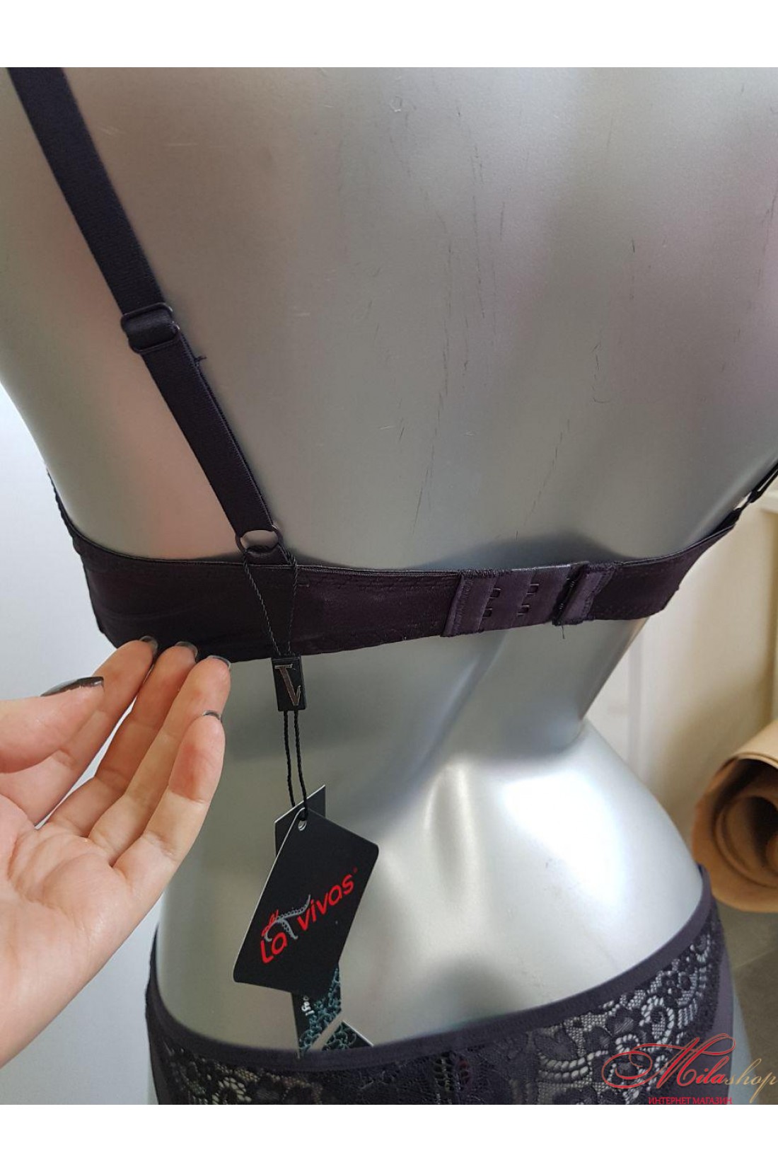 Шикарный комплект Lavivas 50248 из микрофибры и кружева. Чашки со встроеным пушапом и тонкой кружевной перемычкой. Трусики-бразилианки с низкой посадкой и бесшовным краем попы. Сзади есть вставка из кружева.