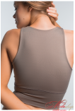Топ из спортивной микрофибры с высокой посадкой воротничка. Из плотного материала. Имеет двойную конструкцию ткани, чтобы иметь комфортное и уверенное движение. Высокая посадка выреза воротничка. Плоские швы. Внутренние швы все скрыты и гладкие. Спортивная коллекция обладает универсальными моделями, которые могут быть стильным дополнением повседневного лука, комфортным комплектом для спорта и удобным элементом домашней одежды.