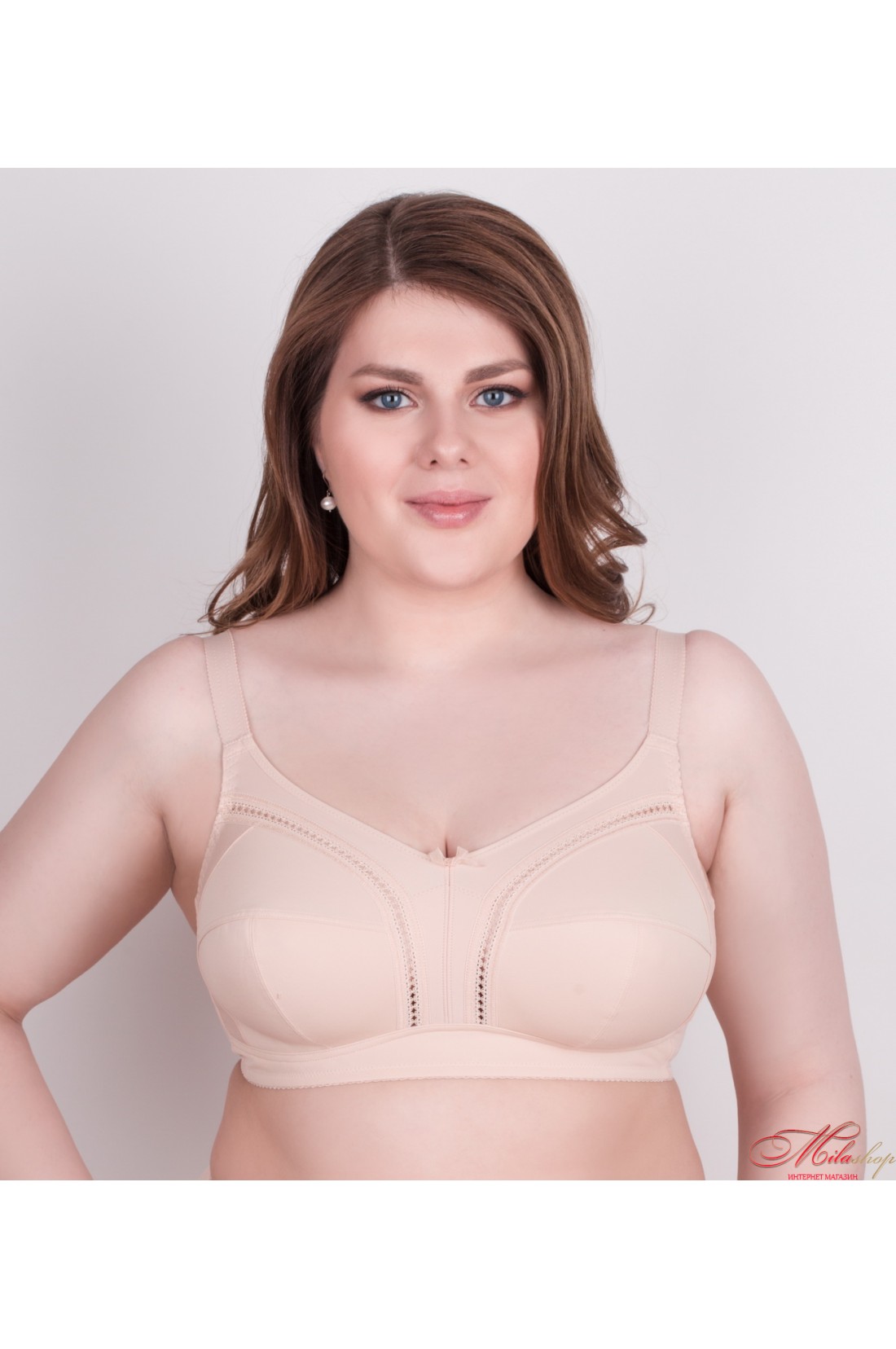 Удобный базовый бюстгальтер из эластичного трикотажного хлопкового полотна. Без каркасов. Имеет расширенные несъемные бретели. Отделан тесьмой в виде "мережки" и декоративным бантиком.