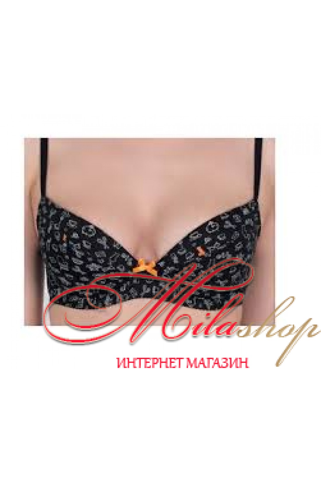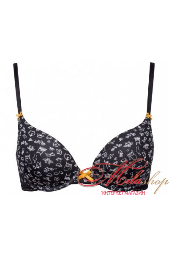 Бюстгальтер пуш-ап из эластичного вискозного трикотажного полотна с лёгкой графичной набивкой. Дублированные чашки с объёмными вкладышами. На косточах. Серия Акцент "Мур-мур".