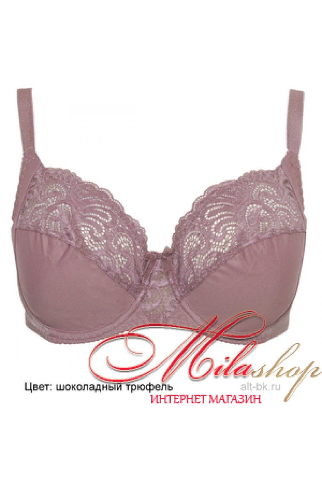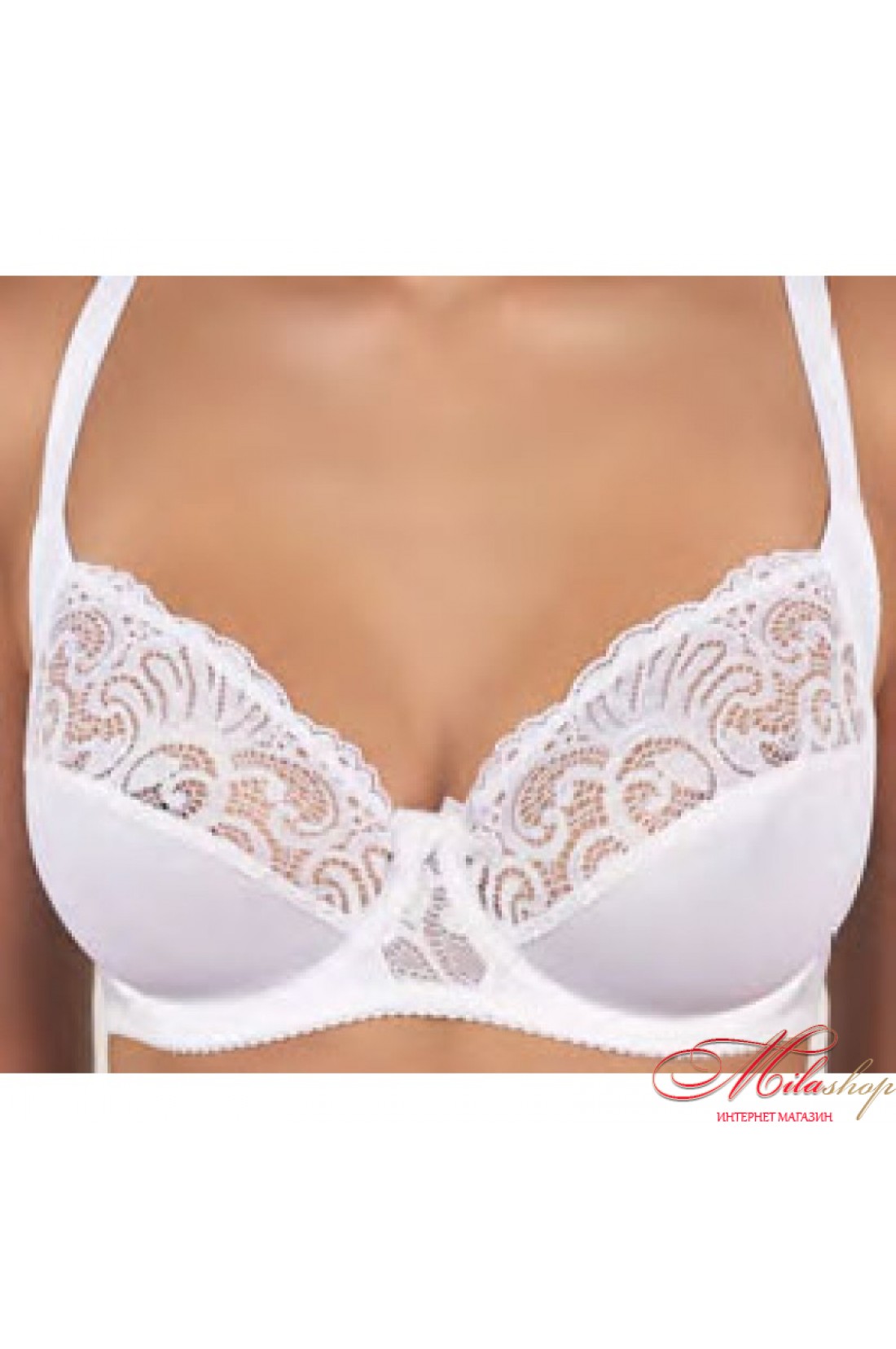 Бюстгальтер из эластичного трикотажа и кружева, на каркасах. Мягкие чашки на каркасах, с боковой корректирующей деталью и двойным членением. Маечный тип стана, отделка - бантики.