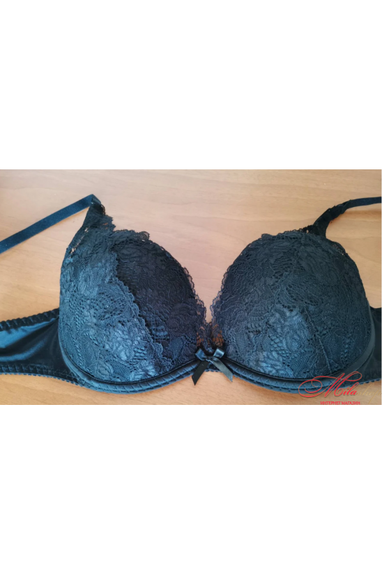 Классический элегантный бюстгальтер MilaVitsa с формованной чашкой пуш-ап на каркасах. Чашки украшены кружевом, переходящим на основание бретели. Бретели несъемные. Выполнен из эластичного трикотажного полотна. Украшен маленьким декоративным атласным бантиком.