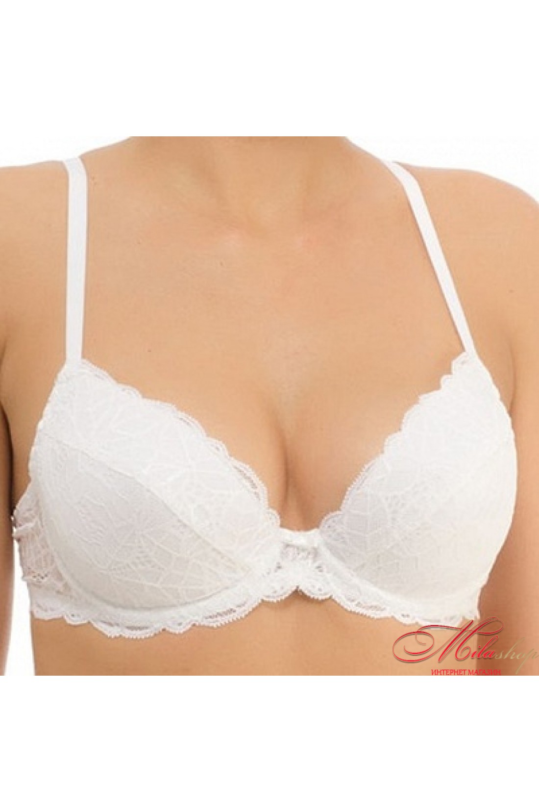 Бюстгальтер "пуш-ап" кружевной, из трикотажного полотна и эластичного полотна. На каркасах. Чашки на дубляже с хлопком и объёмными вкладышами, с двойным членением. Декор – атласный бантик