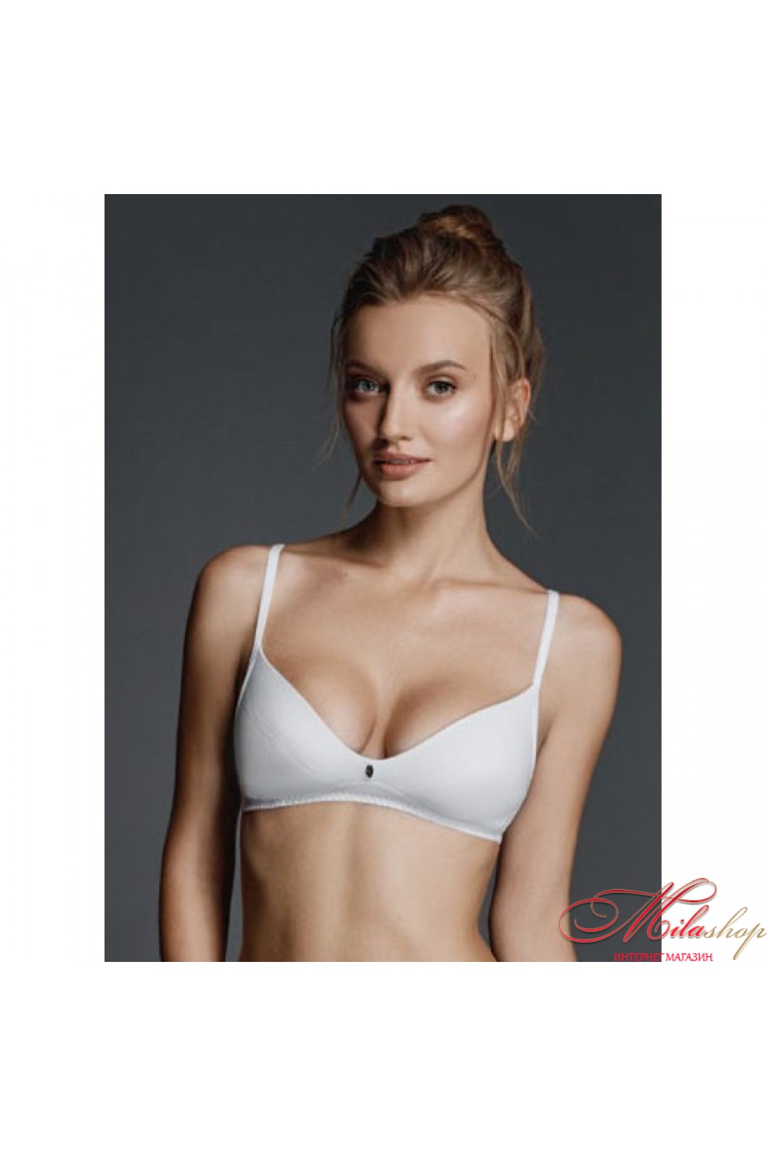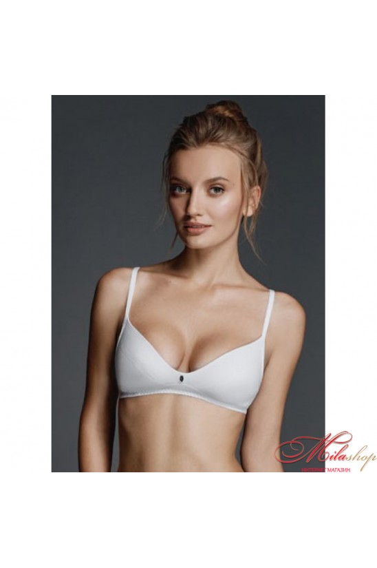 Бюстгальтер с дублированными чашками. Выполнен из эластичного трикотажного и хлопкового полотна. Без каркасов. Несъемные мягкие, комфортные бретели. Декор - подвеска.