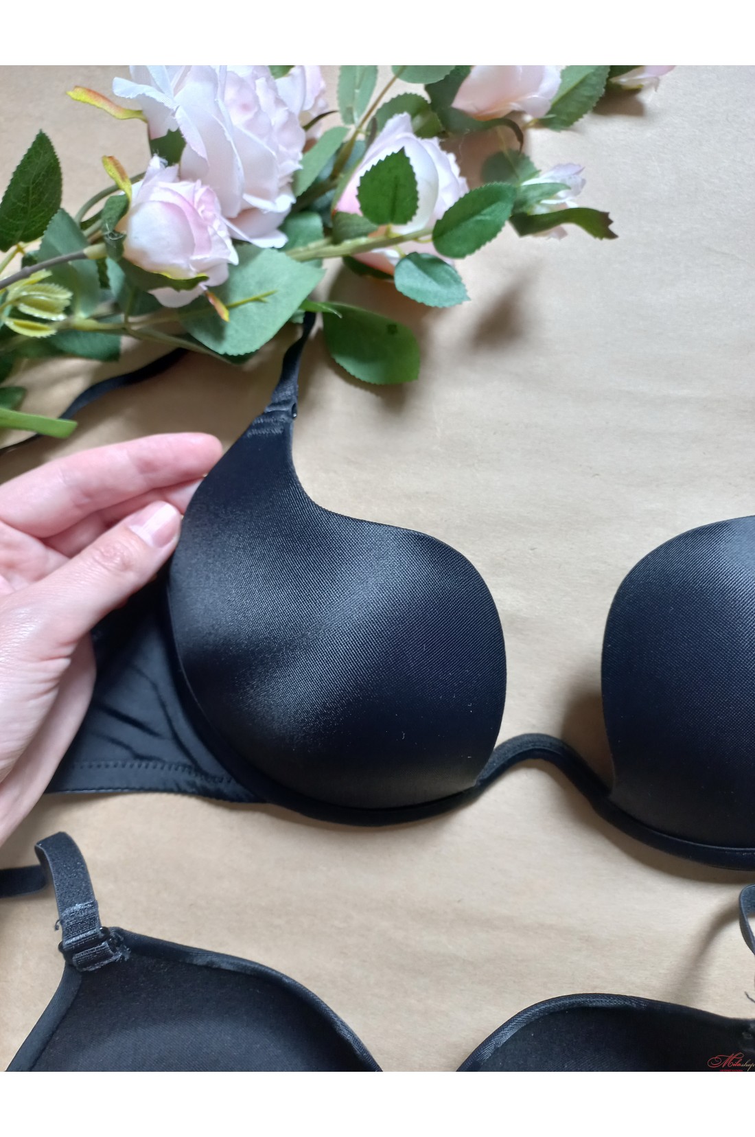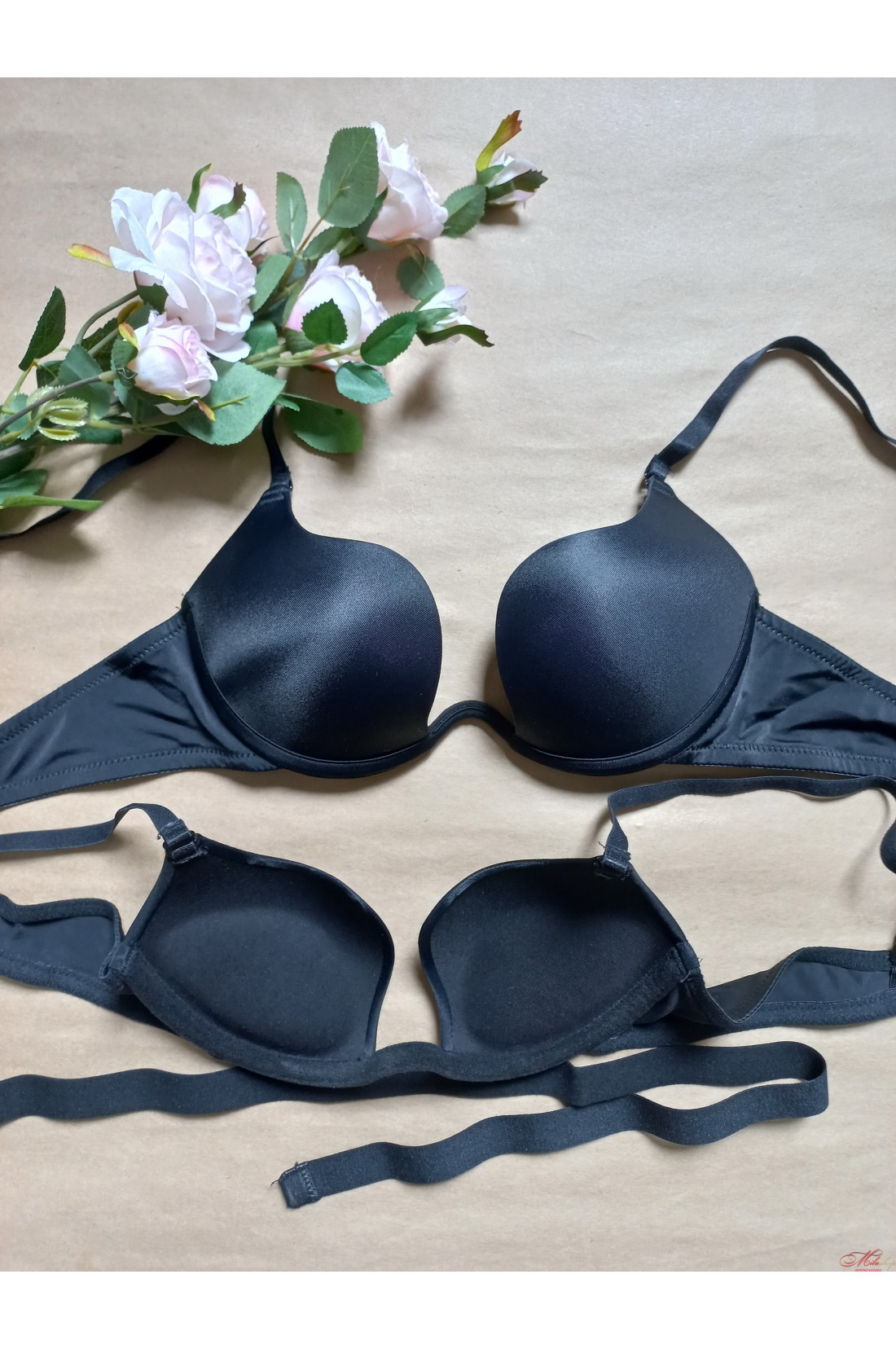 Бюстгальтер с гладкими чашками с пуш-ап. Бретели съемные, регулируются по длине. Интересная форма бюста и тонкая линия соединения чашек.