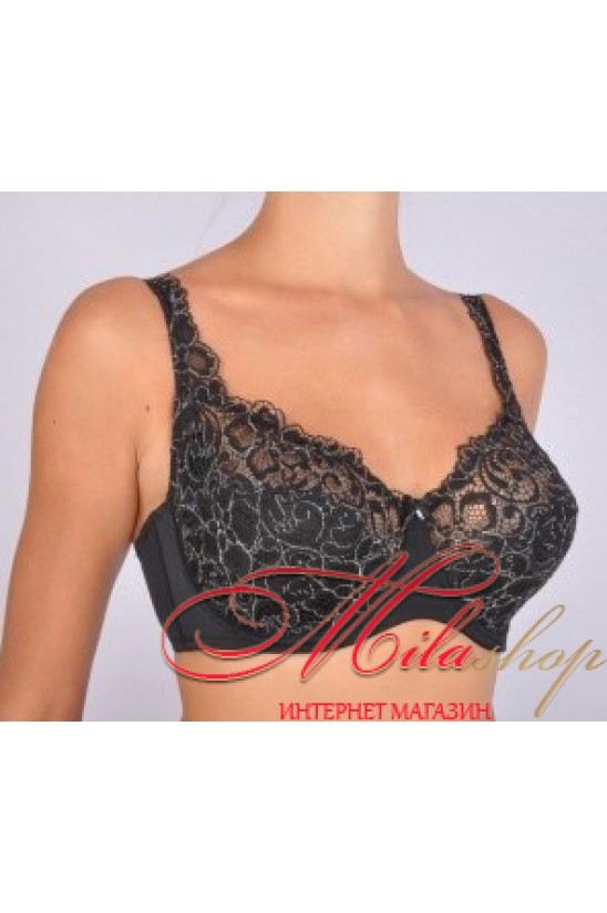 Бюстгальтер 61909 Diorella Е чашка в черном цвете с белыми вкраплениями нитей на кружевном полотне, дублированная хлопковым полотном, Спинка из элластичного полотна, застежка на два крючка в трех положениях.