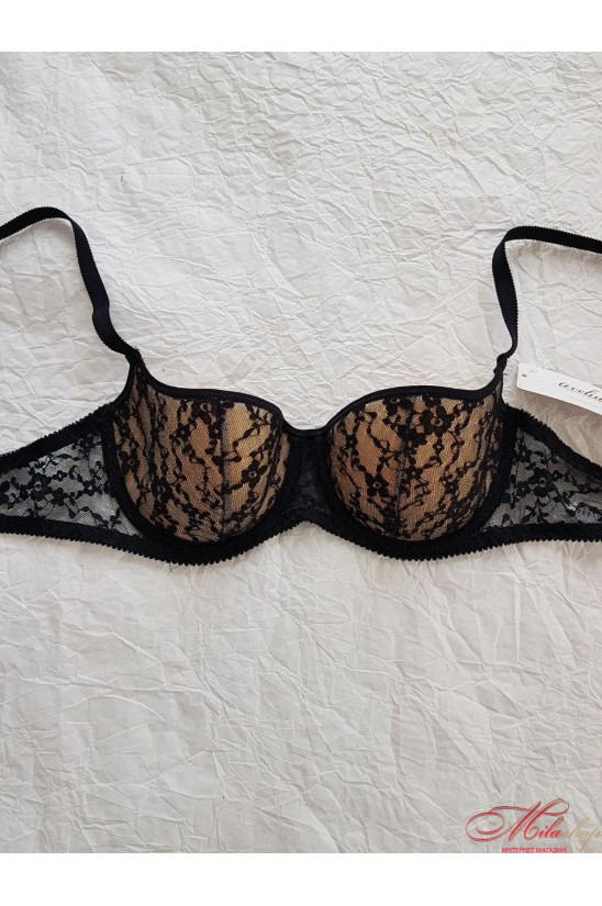 Бюстгальтер "балконет" из эластичного кружевного полотна, на каркасах. Чашки на дубляже с хлопком.