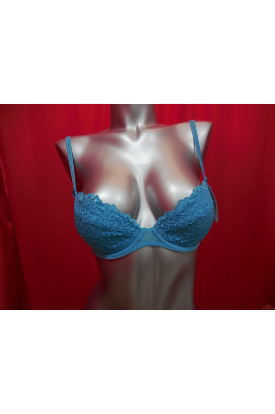 Бюстгальтер «пуш ап» из эластичного кружева и эластичной сетки, на каркасах. Чашки на дубляже с хлопком, с объемными вкладышами.