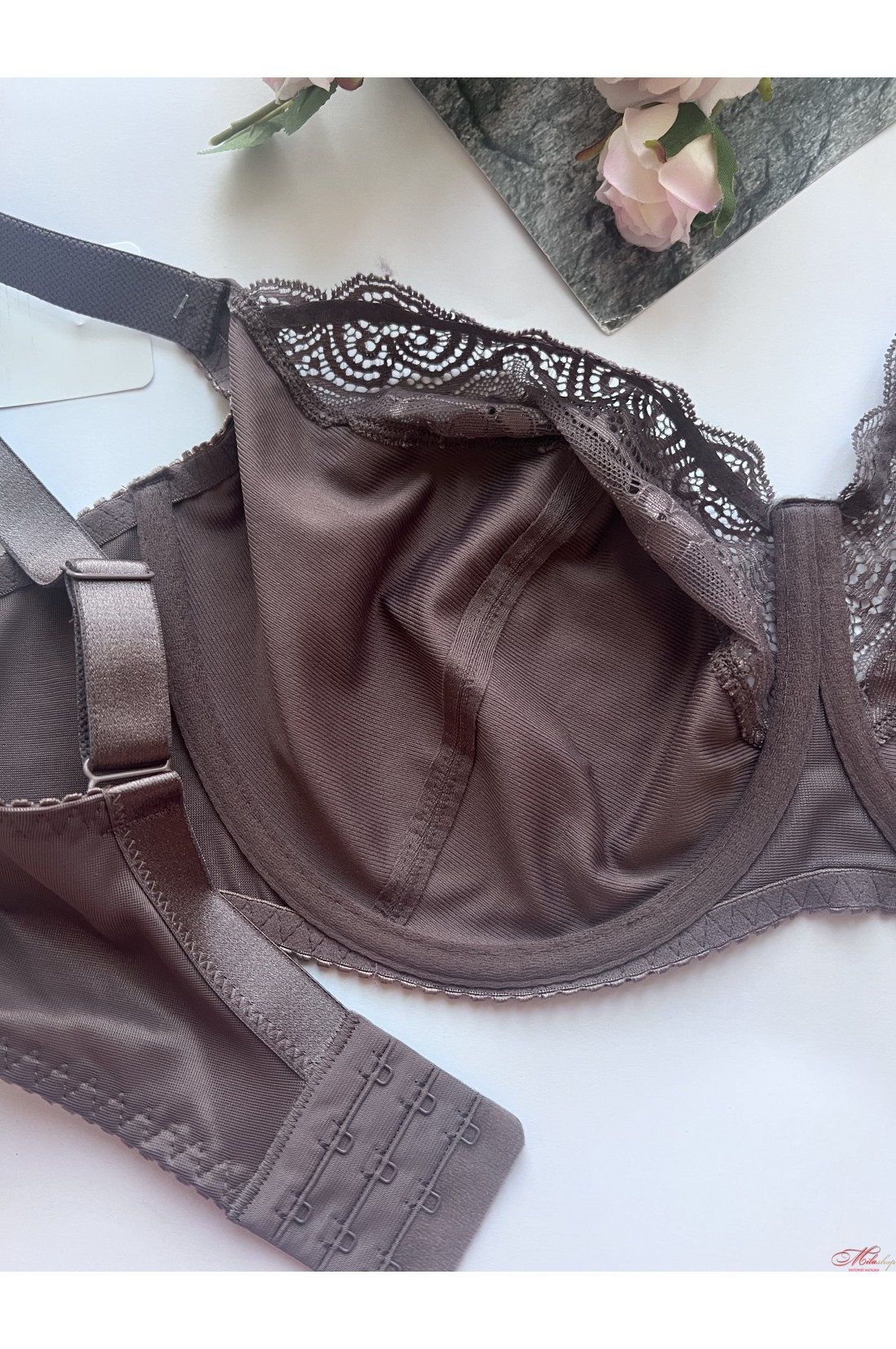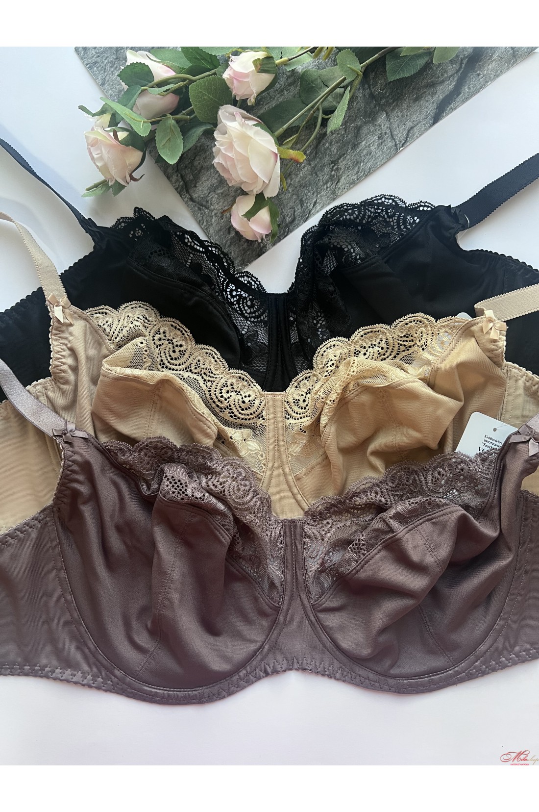 Женственный бюстгальтер балконет выполнен из красивого кружева и микрофибры. Чашечки мягкие, на каркасах. Нижняя деталь чашечек на подкладке из хлопка. Красивые несъемные бретели, регулируются по длине. Бюстгальтер хорошо поддерживает грудь благодаря специальной конструкции чашечек.