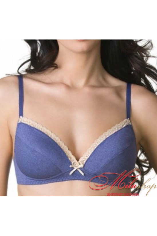 Бюстгальтер из эластичного трикотажного меланжевого полотна. Без каркасов. Нижние детали чашек на подкладке из неэластичного из неэластичного трикотажного хлопкового полотна. Отделка - бантик, узкое эластичное кружево.