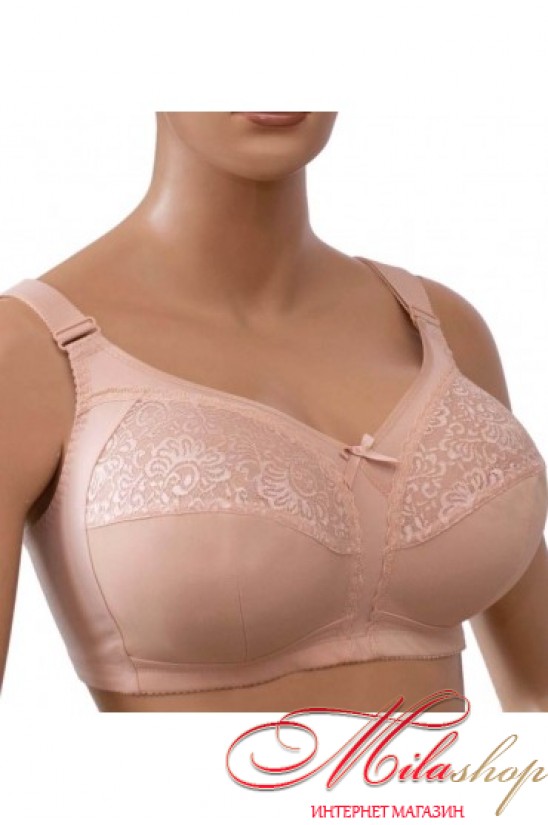 Бюстгальтер из эластичного полотна, эластичного сетчатого полотна, кружевного полотна, ламинированного материала. Без каркасов, хлопковая подкладка чашек. Стандартная бретель, соединение с чашкой через фурнитуру. Застёжка на 4 ряда крючков для подбора оптимально комфортного объёма.