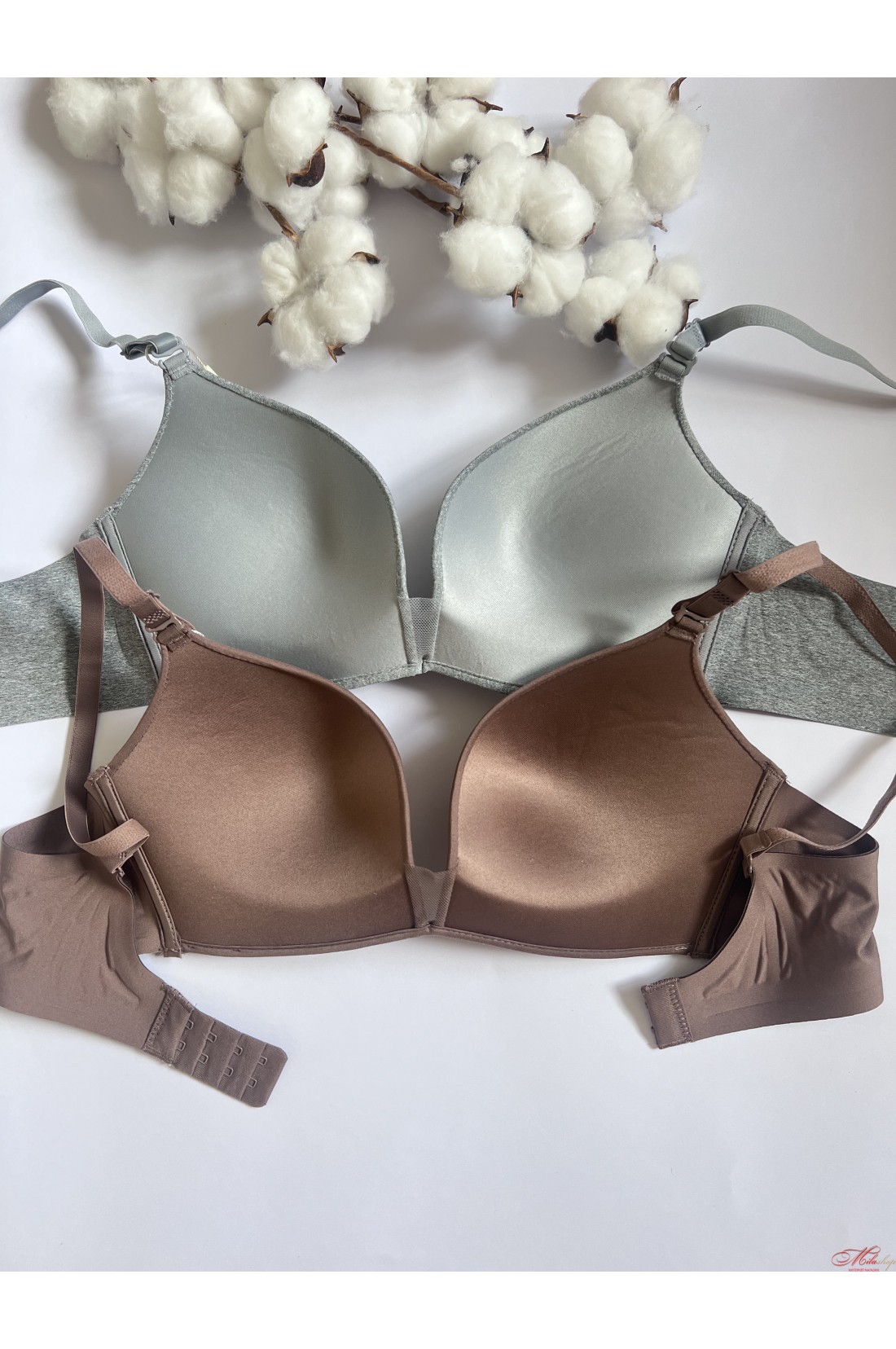 Прекрасный женский бюстгальтер без косточек, чашка с небольшим пуш-ап, формованная чашка, пояс бюстгальтера с бесшовным краем. Чашки гладкие. Бретели съемные, регулируются по длине.