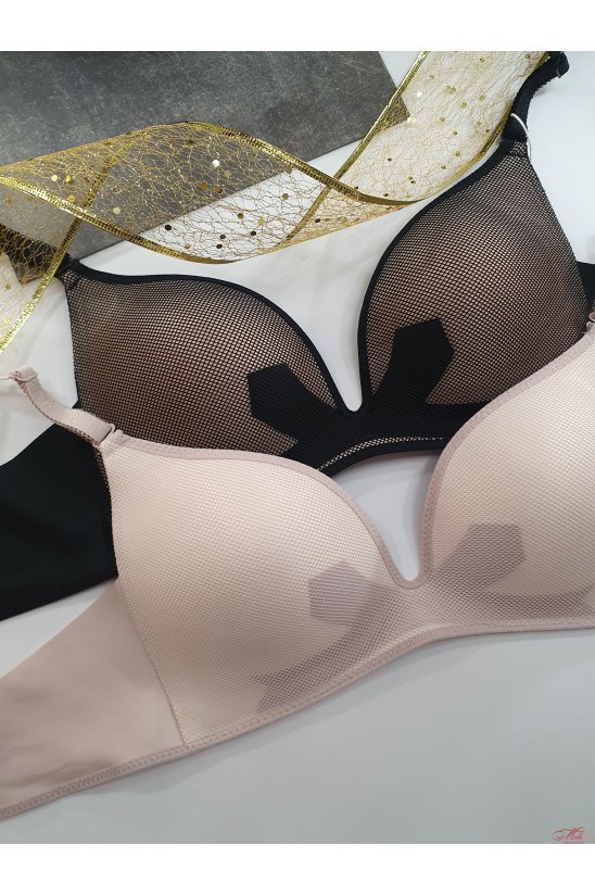 Прекрасный женский бюстгальтер без косточек, чашка с небольшим пуш-ап, формованная чашка, пояс бюстгальтера с бесшовным краем. Чашки украшены сетчатым полотном. Бретели съемные, регулируются по длине.