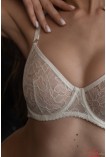 Красивый бюстгальтер из ажурного кружева. Мягкие чашки на косточках поддерживают грудь и не добавляют объем. Тонкие бретели не отстегиваются, регулируются по длине. Застегивается на спине крючками.