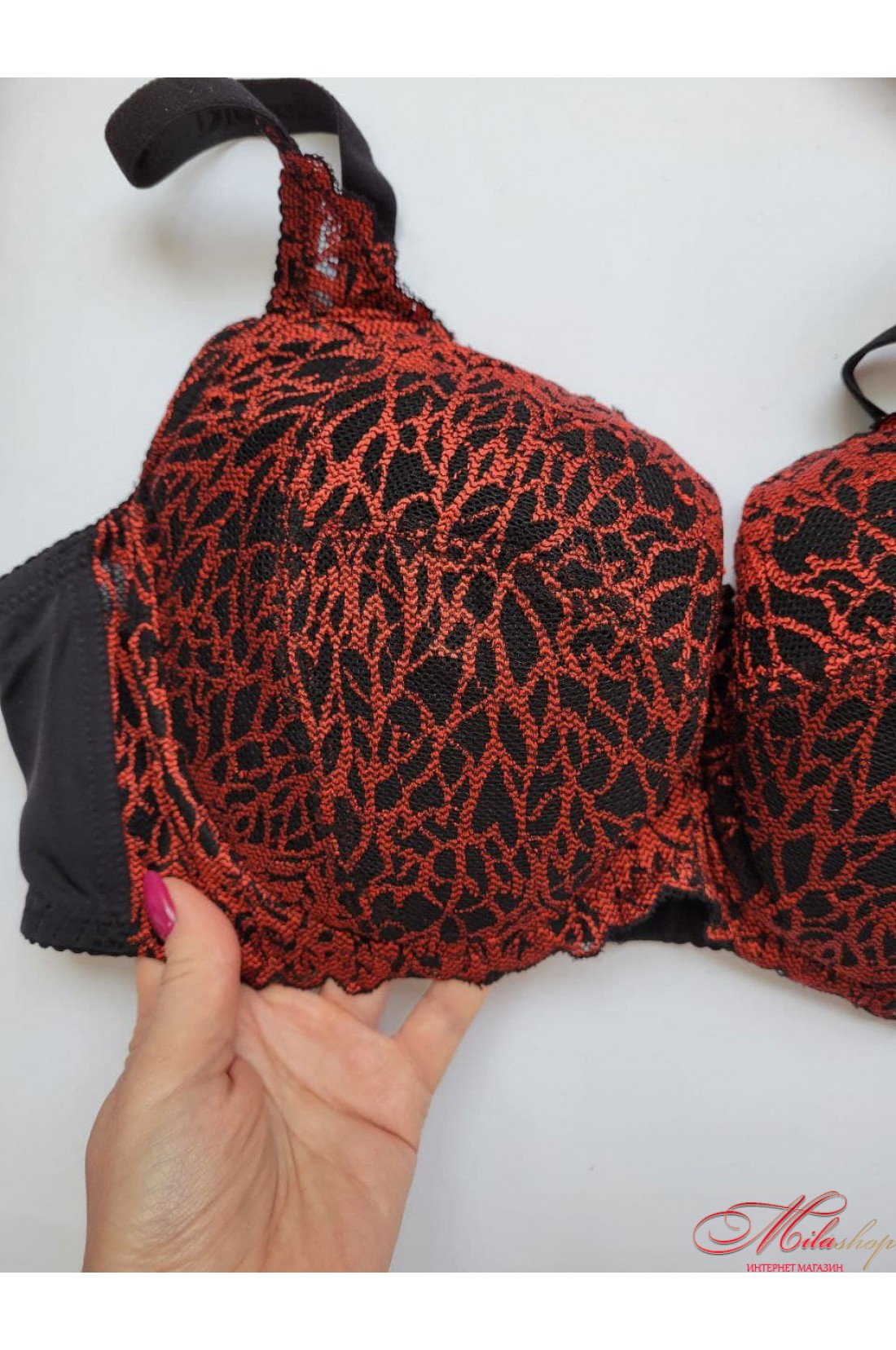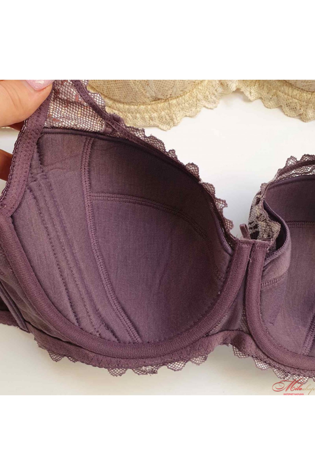 Бюстгальтер с мягкими поролоновыми чашками дополнен нежным кружевом. Спинка гладкая с боковыми косточками для лучшей поддержки. Бретели несъемные, регулируются по длине.