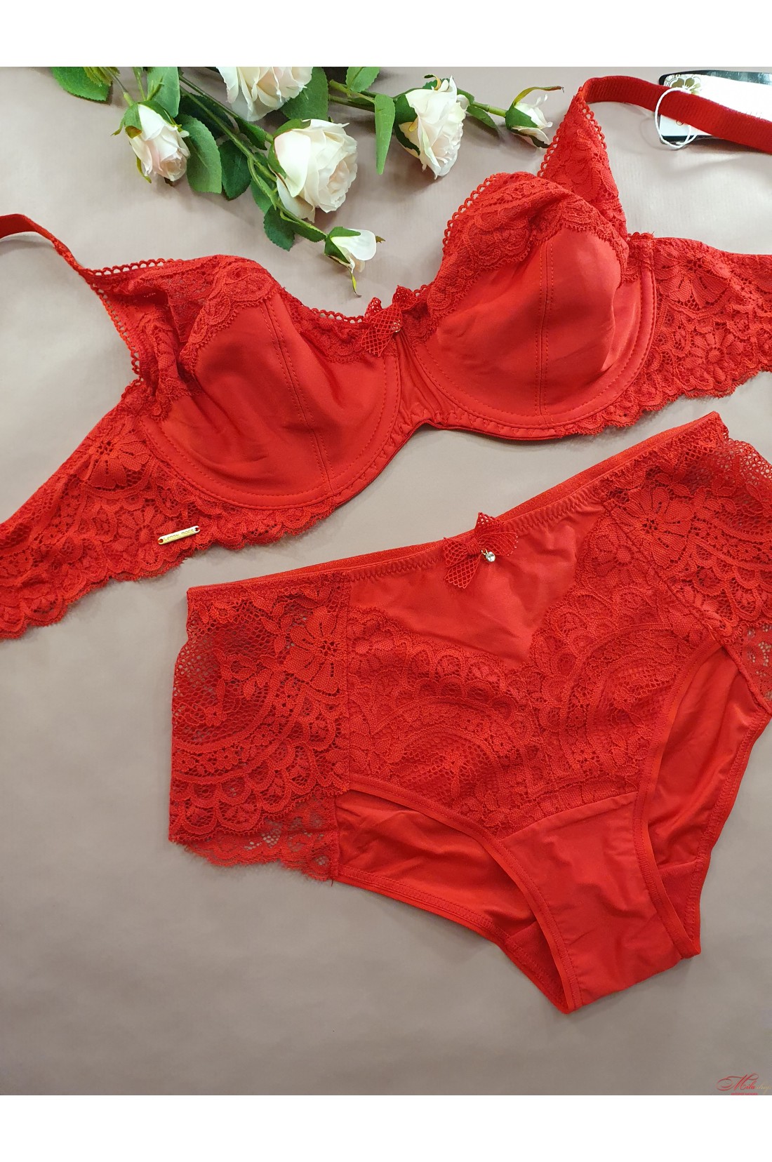 Красивый кружевной бюстгальтер на косточках с мягкими чашками. Внутри на половину чашечки хлопковый подклад, спинка из эластичного материала. Бретели несъемные, регулируются по длине.