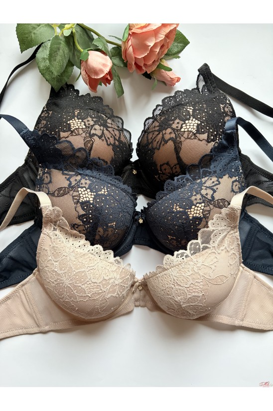Прекрасный женский бюстгальтер, чашка с пуш-ап в форме ладони, фомованная чашка, украшен кружевом. Бретели съемные, регулируются по длине.