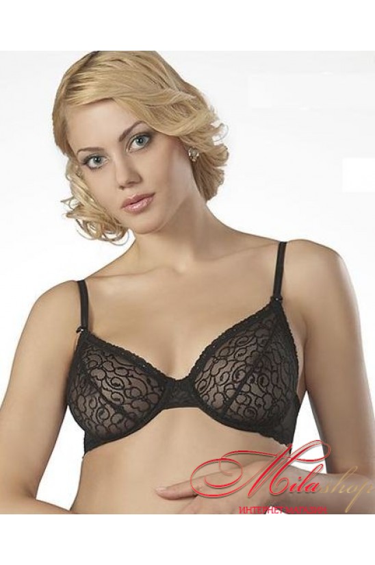 Бюстгальтер из эластичного трикотажного полотна и эластичного кружева. На каркасах. Открытая центральная деталь бюстгальтера.