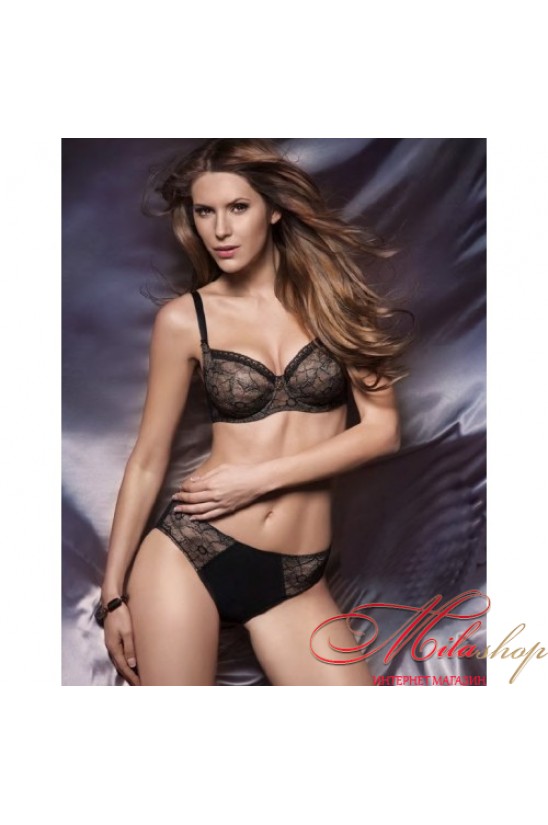 бюстгальтер из ламинированного трикотажного полотна, эластичного трикотажного полотна. На каркасах. Мягкие чашки с тройным диагональным членением. Упругие пластины в боковых деталях стана. Отделка – узкое неэластичное кружево, бантики, подвеска в виде сердечка. Серия BODY ART. Купить бюстгальтер черного цвета можно в нашем магазине milashop.com.ua.