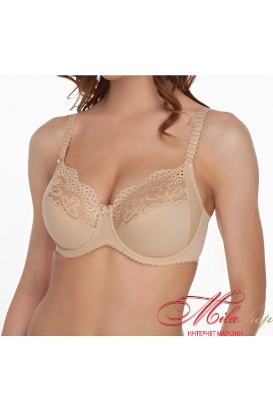 Бюстгальтер из эластичного кружева и эластичного трикотажного полотна. На каркасах.