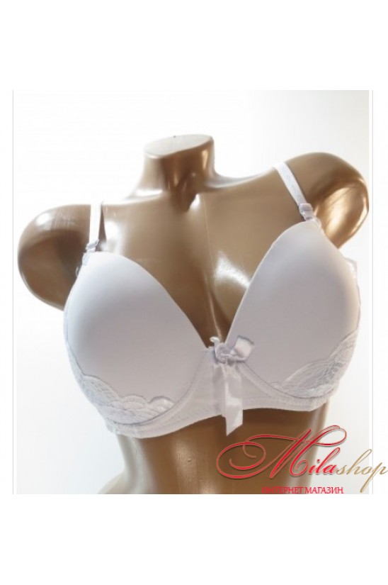 Бюстгальтер на тонком поролоне, на косточках, чашка с боков урашена кружевом, спинка - гладкое полотно, застежка на два крючка в трех положениях, съемные бретели.