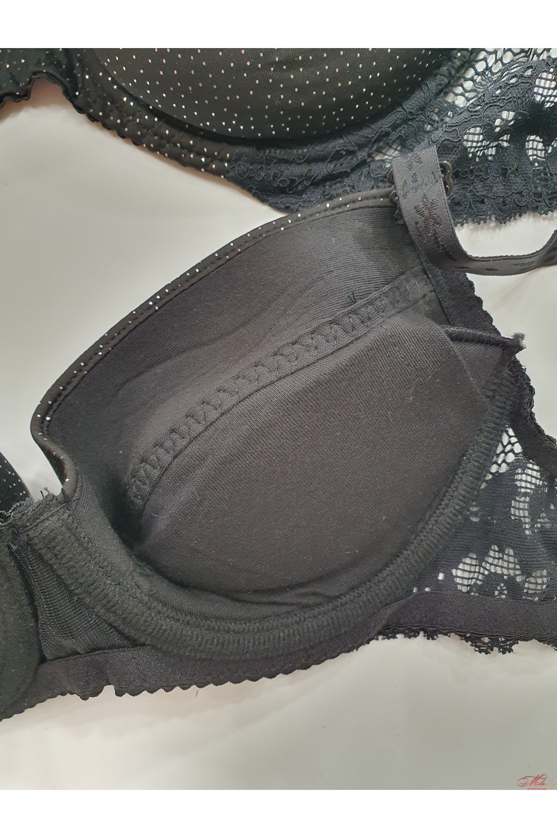 Бюстгальтер на тонком поролоне, чашка со съемным пуш-ап, внутри хлопковый подклад, кружевной пояс. Бретель съемная, регулируется по длине. Обеспечивает хорошую поддержку груди.