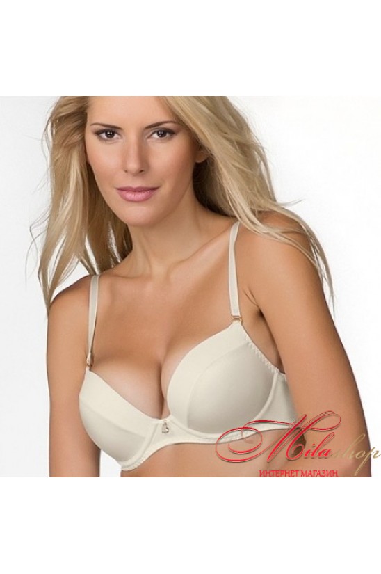 Бюстгальтер "пуш-ап" из эластичного трикотажного полотна с блеском и и отделкой из эластичного трикотажного матового полотна. На косточах. Жесткие формованные чашки с гелевым наполнителем. Съёмные бретели. Отделка - декоративная подвеска в виде сердечка.