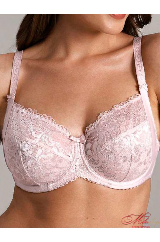 Выполнен из неэластичного ламинированного полотна, эластичного кружевного полотна и эластичного полотна. Боковая деталь чашки и стана из ламинированного трикотажного полотна создает поддержку и красивую зону декольте. Чашка на каркасе с тройным членением. С ажурными бретелями, повторяющими рисунок кружева, отделка - бантик.