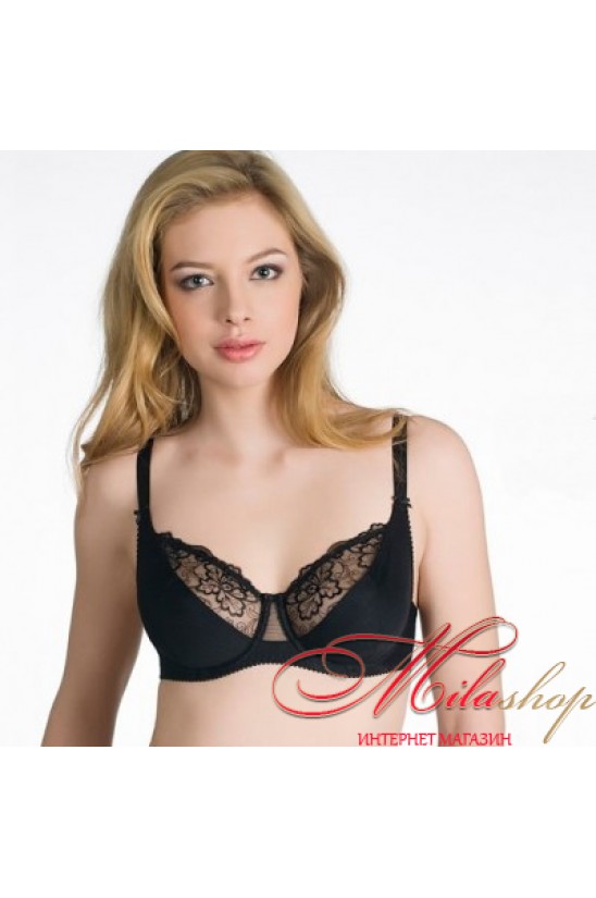 Бюстгальтер из неэластичного трикотажного полотна, неэластичной вышивки и эластичного сетчатого полотна, на каркасах. Мягкие чашки с тройным диагональным членением. Отделка — бантики. У нас вы всегда сможете купить бюст черного цвета по выгодной цене!