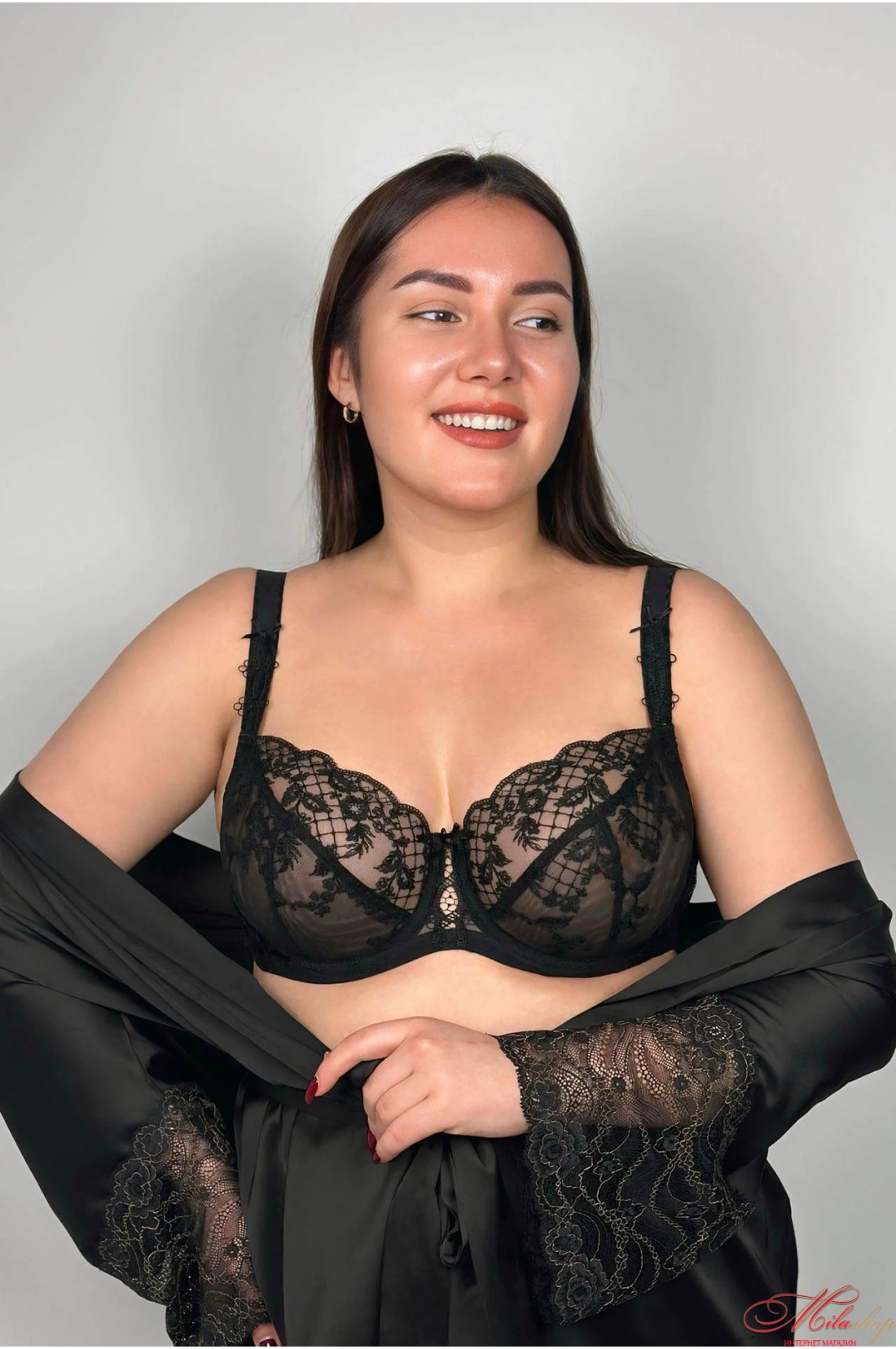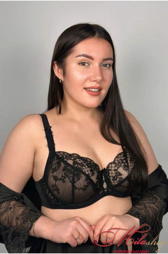 Бюстгальтер из кружева с цветочной вышивкой. Мягкие сшивные чашки, поддерживают пышную грудь и не добавляет обьем, на косточках. Бретели с сатиновым эффектом не отстегиваются, регулируются по длине, застежка на спине: 2 крючка на 3 позиции.