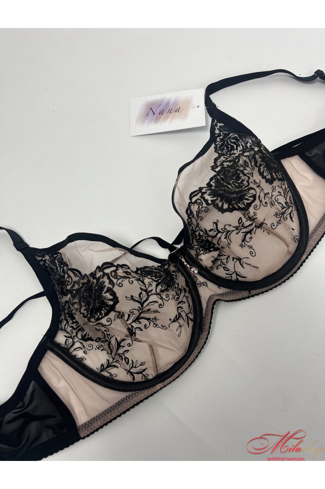 Стильное и качественное женское белье от латвийского производителя Nana. Чашка бюстгальтера закрыта, с вертикальным швом, широкой перемычкой, на каркасе, придает округлым формам бюста. Теперь не нужен пуш-ап для создания соблазнительной зоны декольте. Бюстгальтер благодаря широкому кружеву на бретелях подобен фасону бралетт. Невероятно хорошее сочетание цветов создает соблазнительный неприятный эффект. Нарядная ажурная вышивка на чашке придает элегантность бюсту. 2 пары бретель. Основные несъемные, регулируемые по длине. Дополнительные бретели в виде декоративного элемента снимаются. Пояс средней толщины из полупрозрачного тюля с застежкой на 2 крючка.