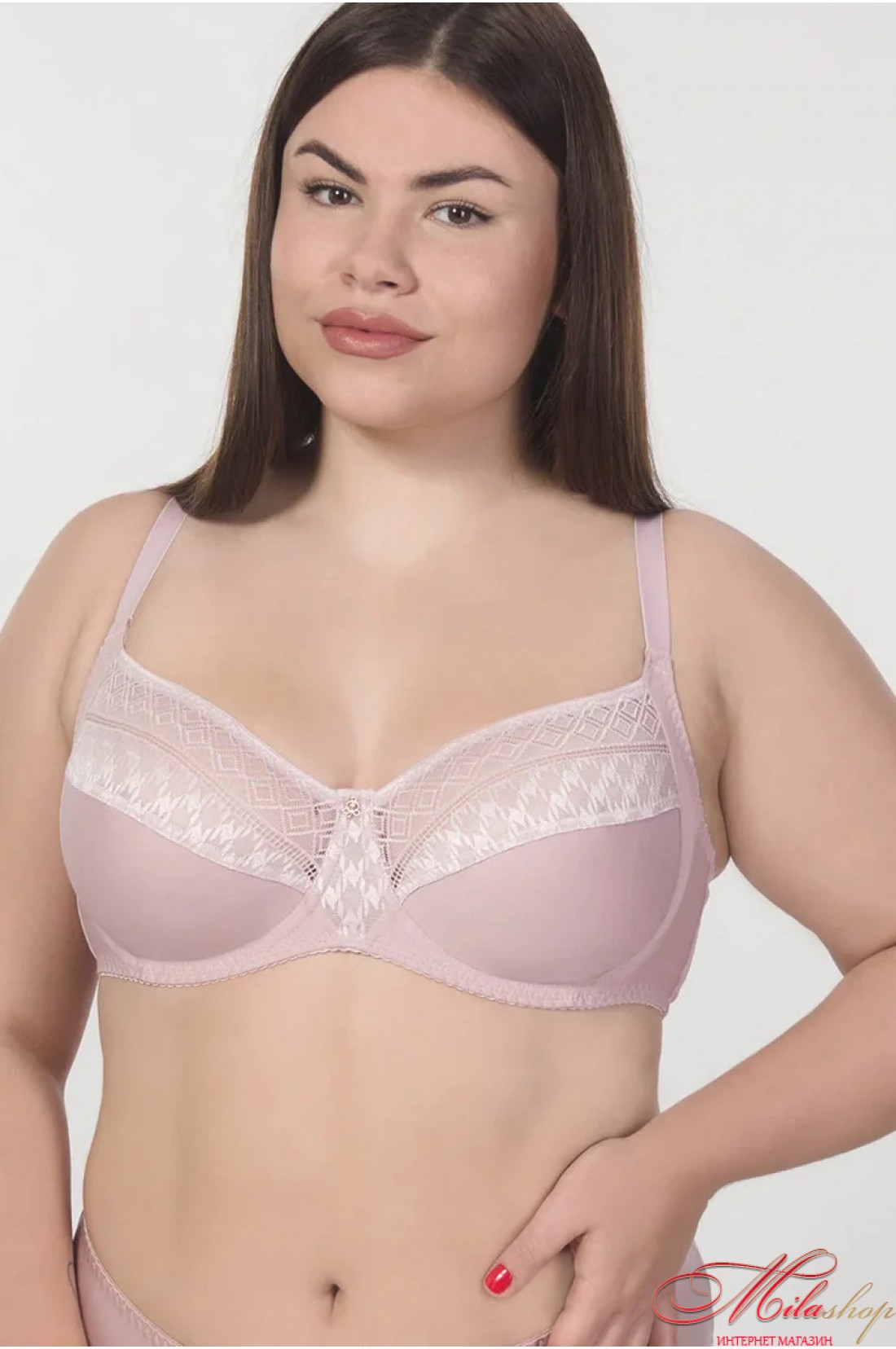 Верхняя часть чашечек декорирована нежным и качественным немецким кружевом с ровным краем. Нижняя часть – из трикотажного полотна. Специальная вертикальная вставка, позволяет подобрать грудь с боковых участков и центрирует ее к середине. Ласточка усилена с внутренней части корсетной неэластичной сеточкой. Спинка выполнена из эластичной ткани с небольшим бликом. Застежка сзади на 2 и 3 ряда крючков в соответствии с размером бюста. Бретели регулируемые и предусматривают 2 ширины – 1,5 см и 2 см в зависимости от размера.