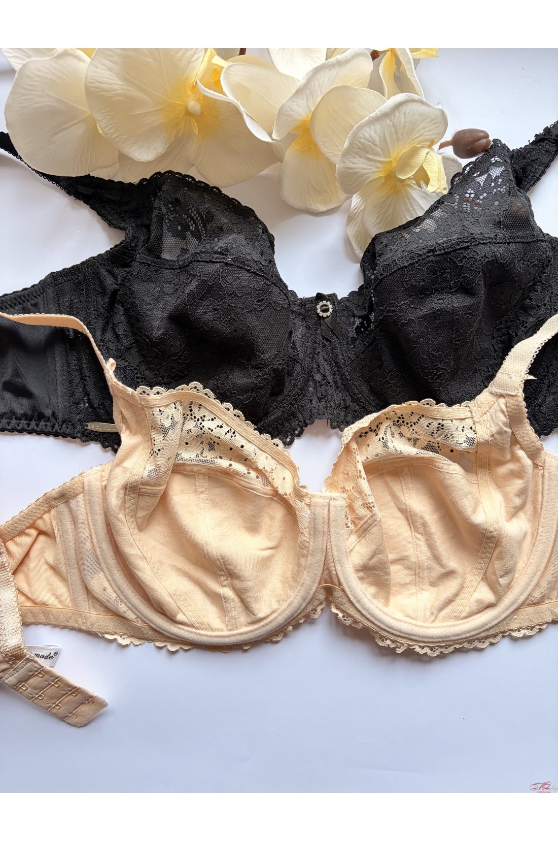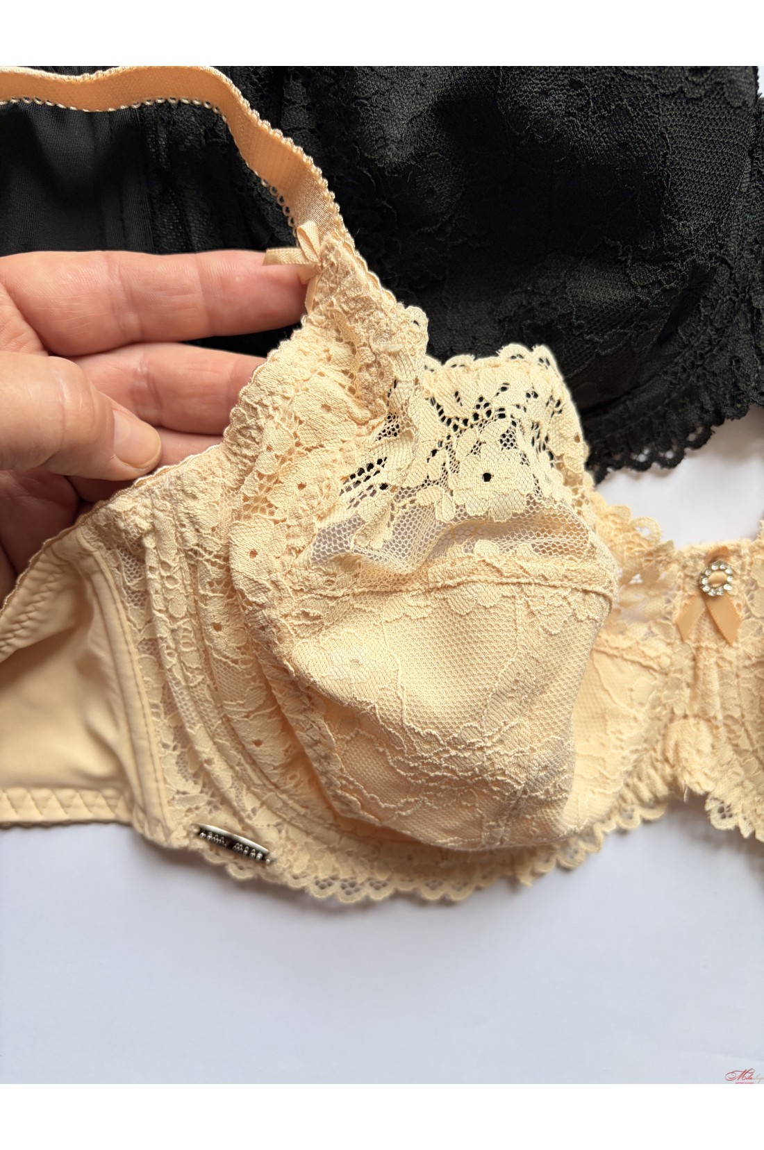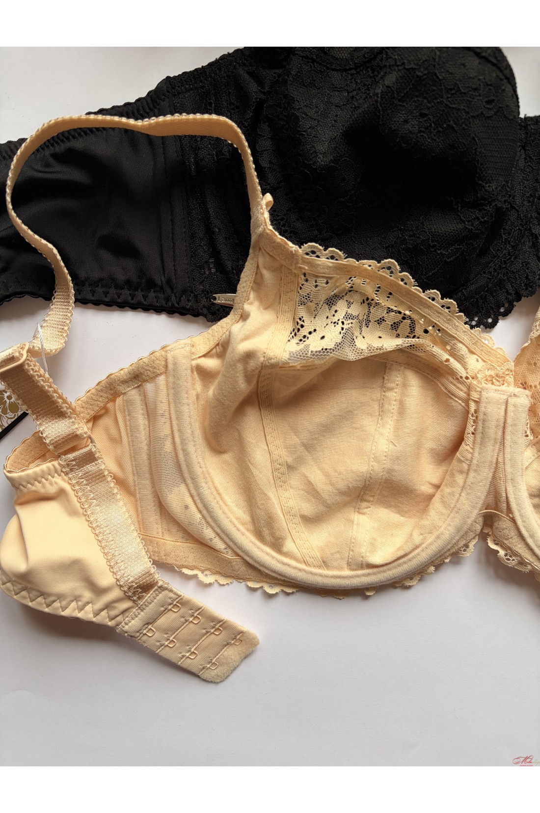 Чашка бюстгальтера на косточках, на мягкой чашке с кружевом. Бретели несъемные, регулируемые. Внутрення часть чашки на хлопковом подкладе.