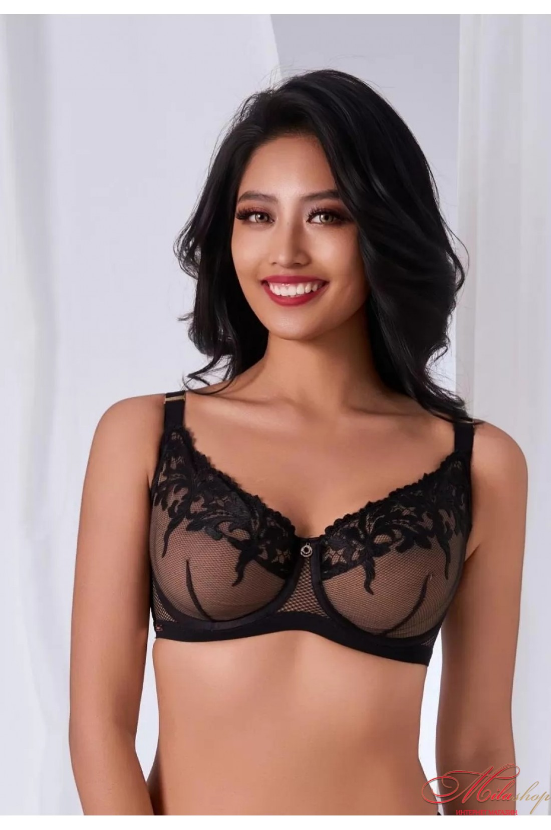 Чашка бюстгальтера на косточках, на мягкой чашке с красивой сеточкой. Бретели несъемные, регулируемые.