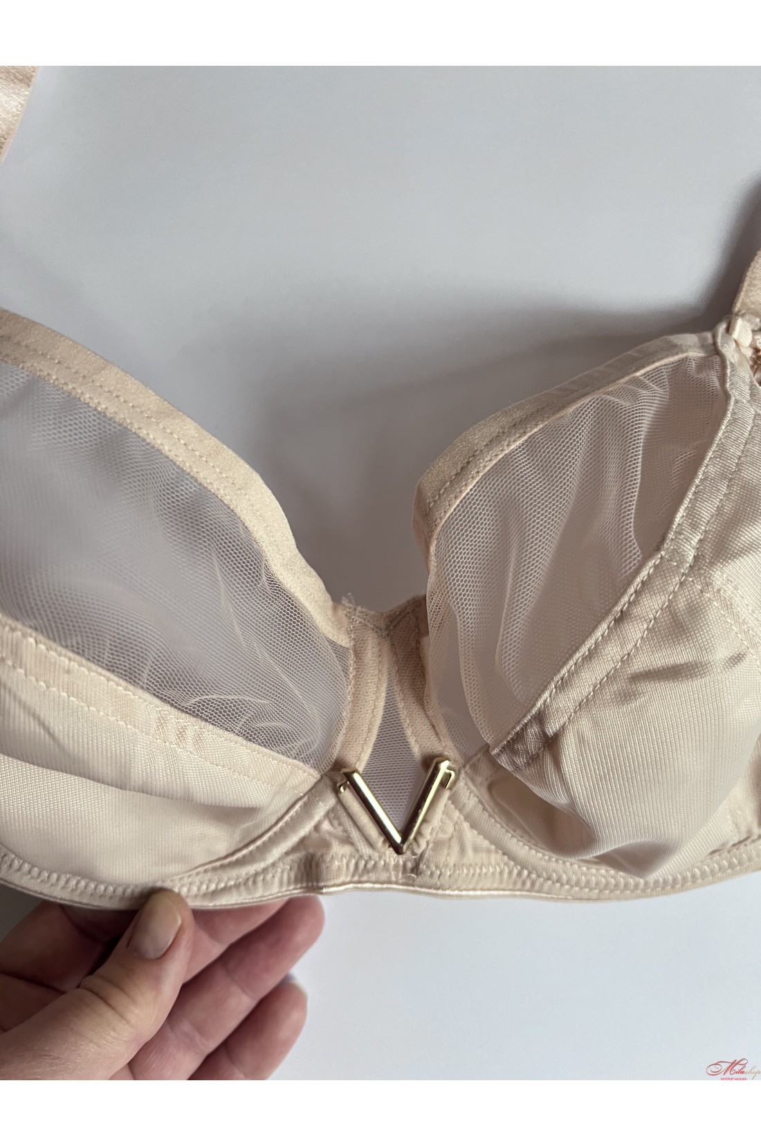 Чашка бюстгальтера на косточках, на мягкой чашке с красивой сеточкой на верхней части. Бретели несъемные, регулируемые.