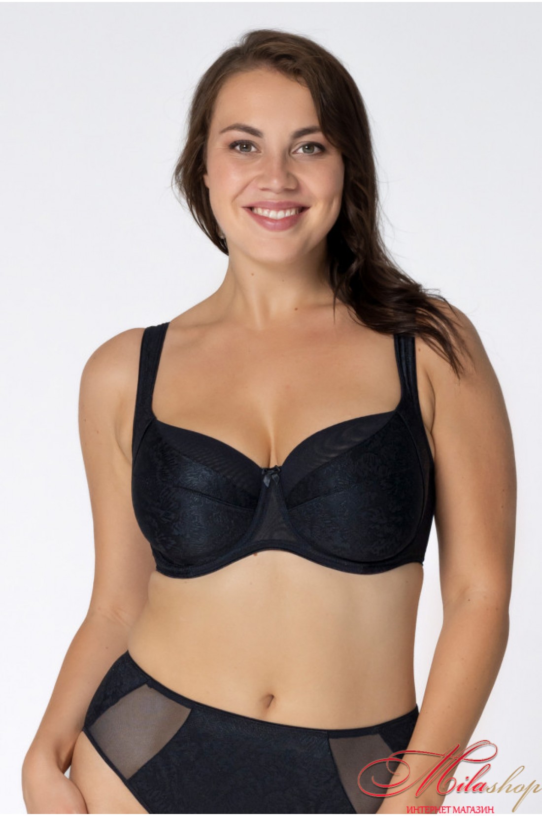 Бюстгальтер с мягкой чашкой на каркасах. Бюстгальтер из гладкой жаккардовой ткани с элегантным цветочным узором. Во внутренней части чашки расположена дополнительная боковая деталь, которая помогает создать красивую округлую форму груди. Широкие бретели с подушечками. Застежка 2 крючка. Пояс полномерный. ROSME Латвия элегантное женское белье высокого качества.