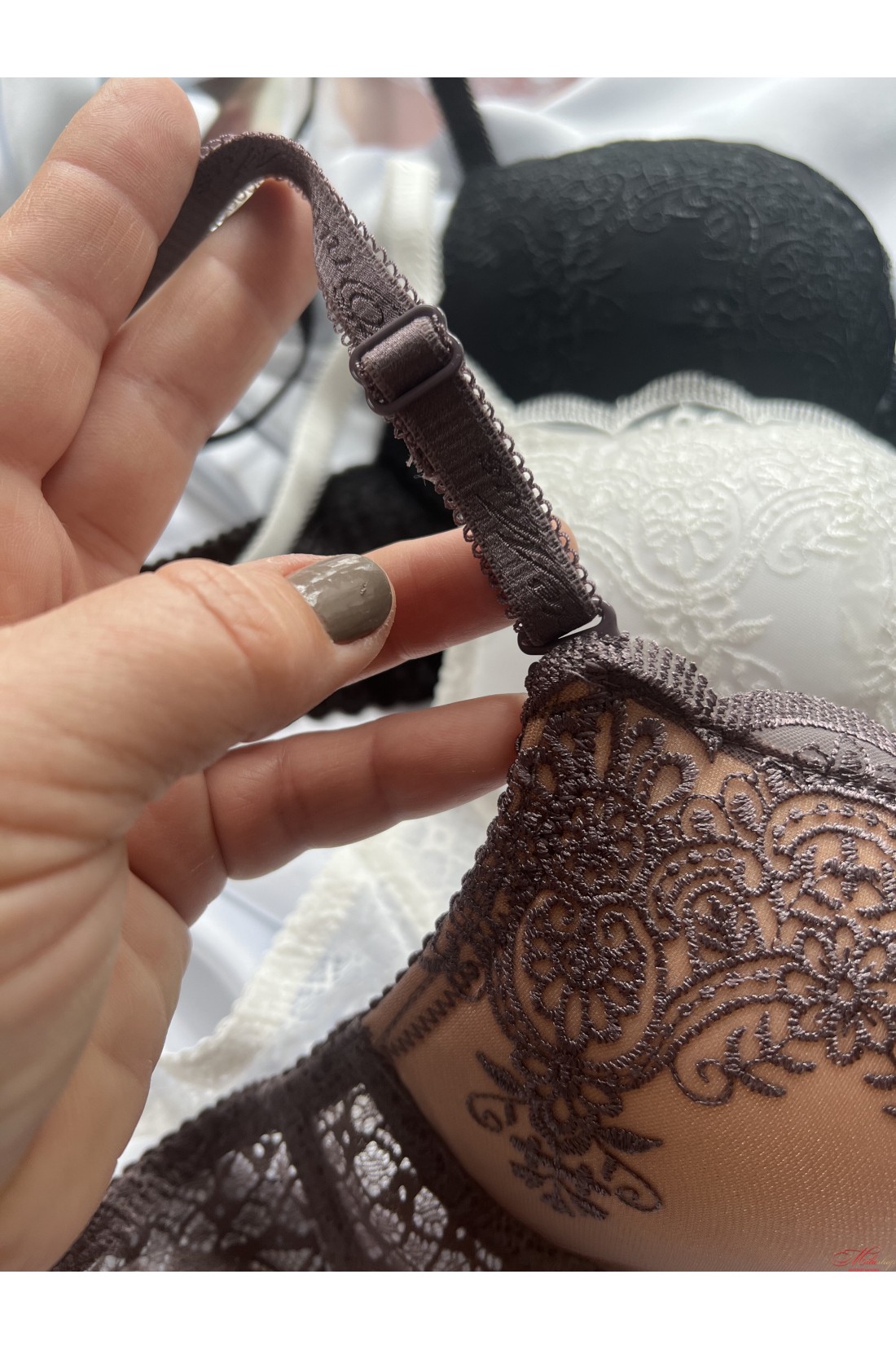 Бюстгальтер украшен кружевом, чашка с пуш-ап, бретель съёмная, регулируется по длине. Отлично поддерживает грудь.