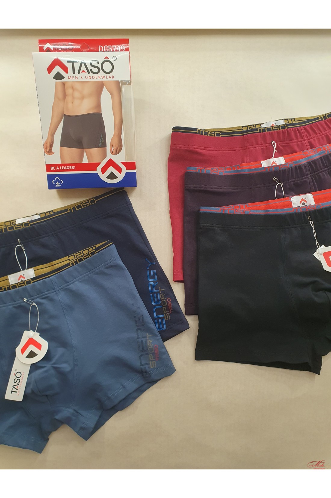 Мужские трусы Taso с двойной резинкой под спорт, изготовленные из хлопка. Эта модель из однотонного полотна сбоку рисунок. Очень удобная модель.