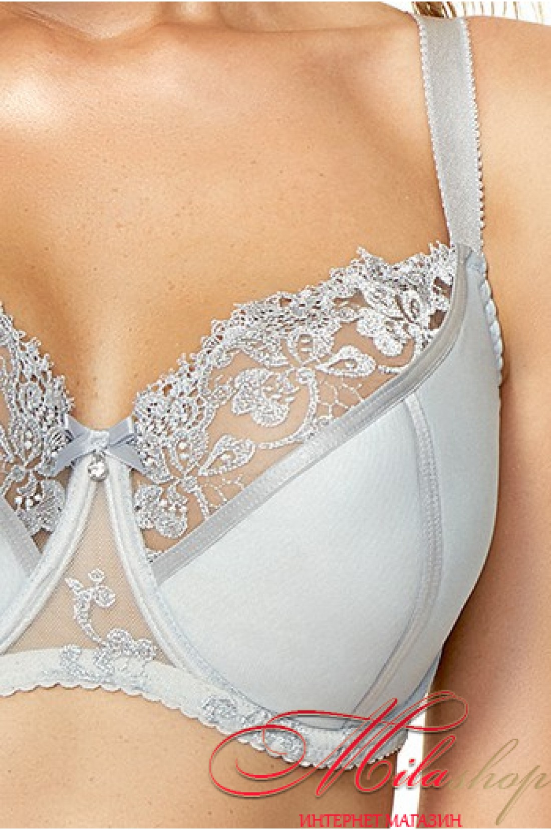 - Прекрасный бюстгальтер с чашками полупоролон, украшенными красивейшим кружевом. Прекрасно собирает и поддерживает грудь, придает красивую округлую форму. Женственная и комфортная модель.