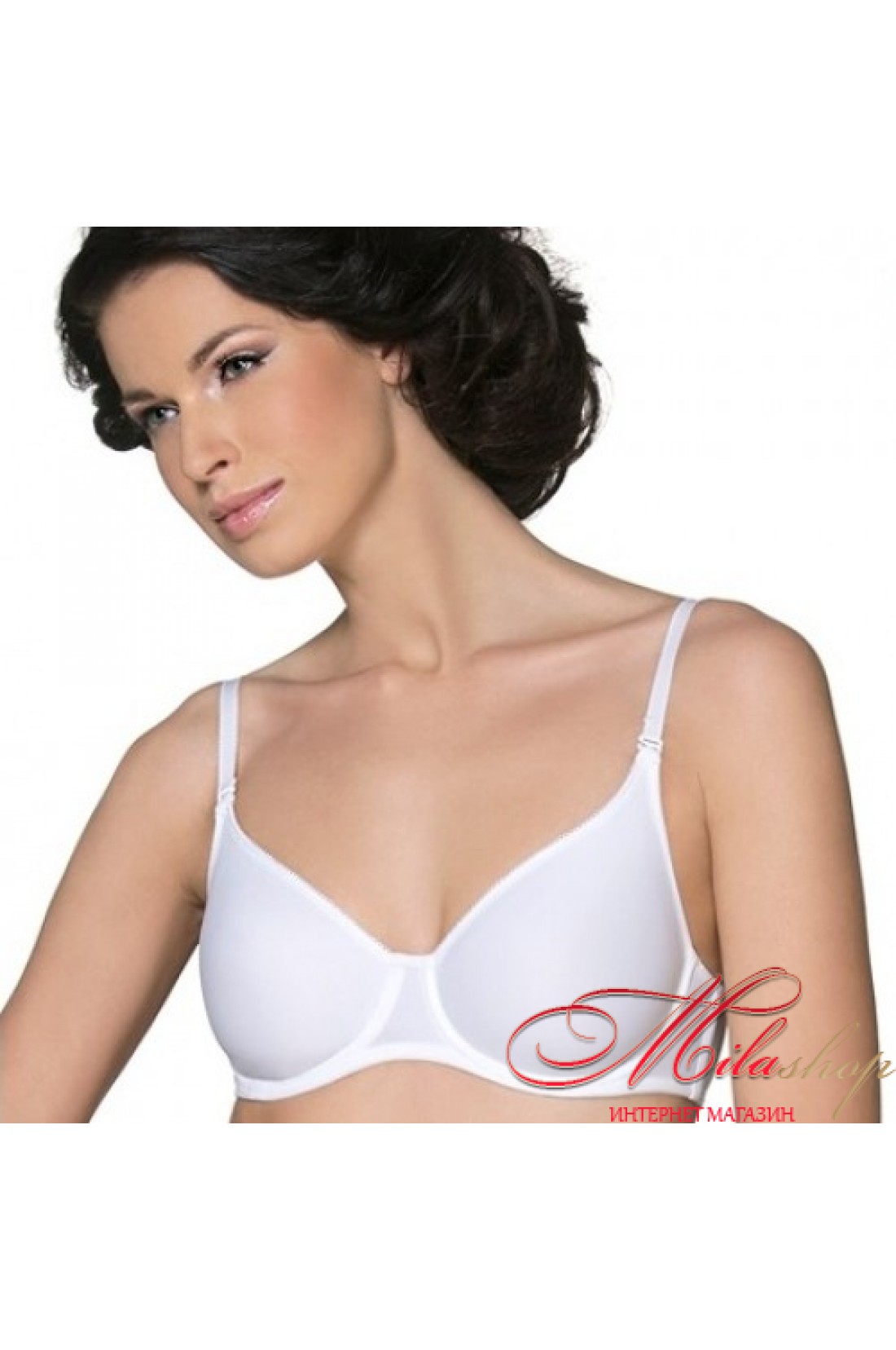 Бюстгальтер из эластичного трикотажного полотна. Мягкие формованные чашки. На каркасах. Съемные бретели. Упругие пластины в боковых деталях стана.