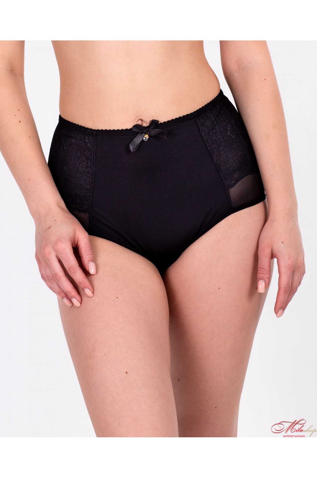 Изысканные трусики-слипы, выполнены из мягкого полотна и кружева. Высокая посадка.
