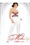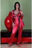 Изысканная пижама из шелкового сатина. Верхняя часть - майка на тоненьких регулируемых бретелях, свободного покроя от груди. Верхняя часть лифа и под грудью украшена роскошной вышивкой. Модель смотрится роскошно!