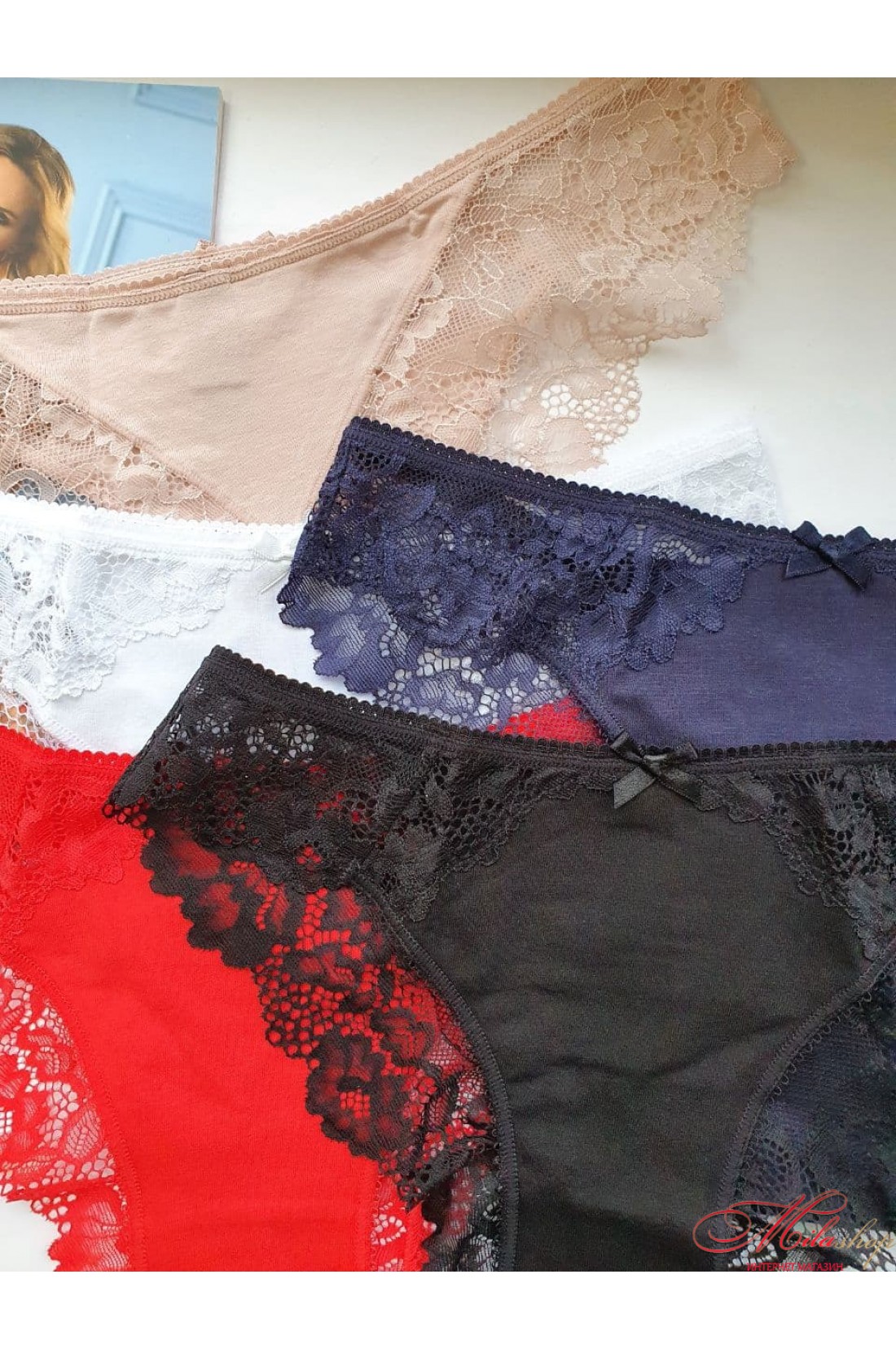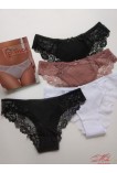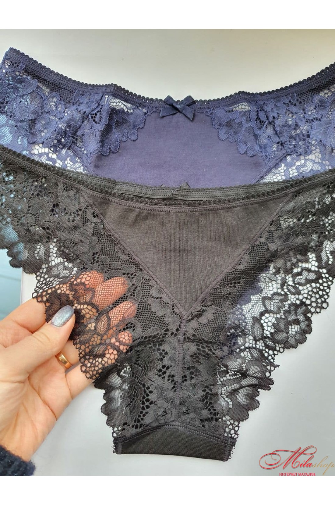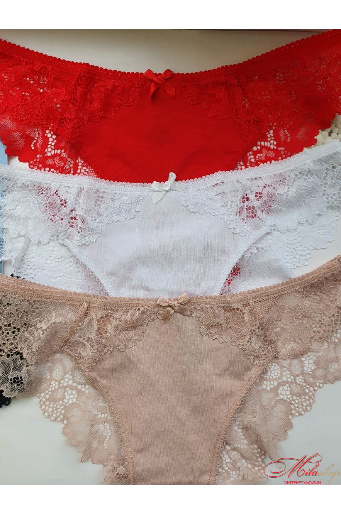 Женские трусики-бразилиана со средней линией талии. Выполнены из нежнейшего хлопка с кружевными вставкам.