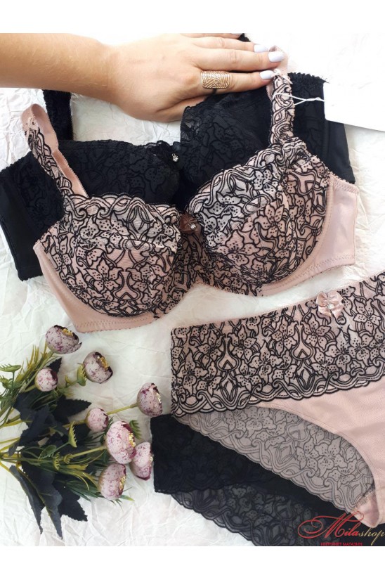 Бюстгальтер полу-поролон, с широкими бретелями. Чашечки украшены флоковым рисунком. Бюст дополняем трусиками мод. 55910 по запросу.