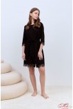 Прекрасный халатик с поясом с красивыми кружевными вставками. Крой на запах, позволяет регулировать посадку халата и размер. Рукава три четверти. Длина халата до колена. Приятный мягкий к телу.