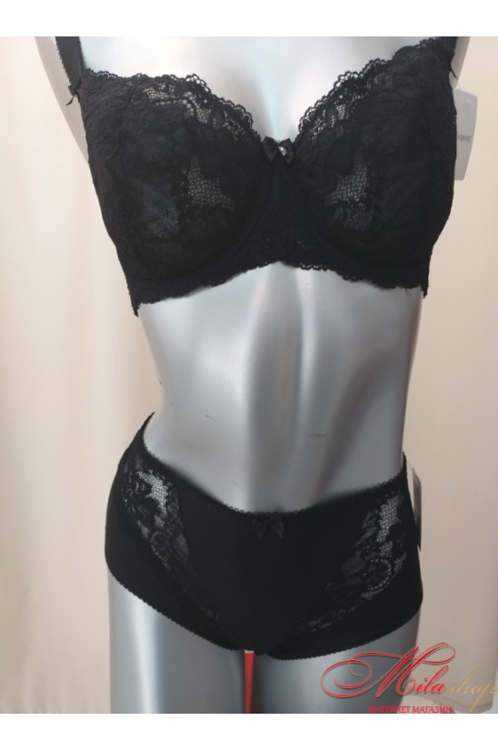 Модный базовый комплект состоящий из бюстгальтера и трусиков слип с высокой посадкой. Выполнен из элегантного кружева. Сшит из двух слоёв ткани: ближе к телу нежная сеточка, внешний слой - мягкое кружево. Модель предназначена для поддержки пышной груди: отсутствие поролона; красивая линия декольте; широкие регулируемые бретели; "европейская" форма бюстгальтера; удобная посадка; полупрозрачная чашка. Трусики с высокой посадкой, выполнены из мягкой ткани с кружевными вставками, ластовица хлопковая.