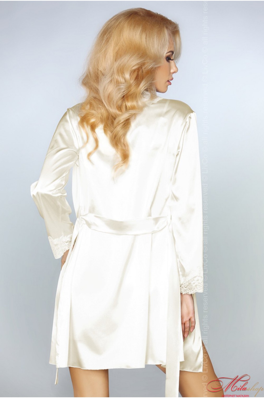Комплект состоит из сорочки, трусиков и халата.